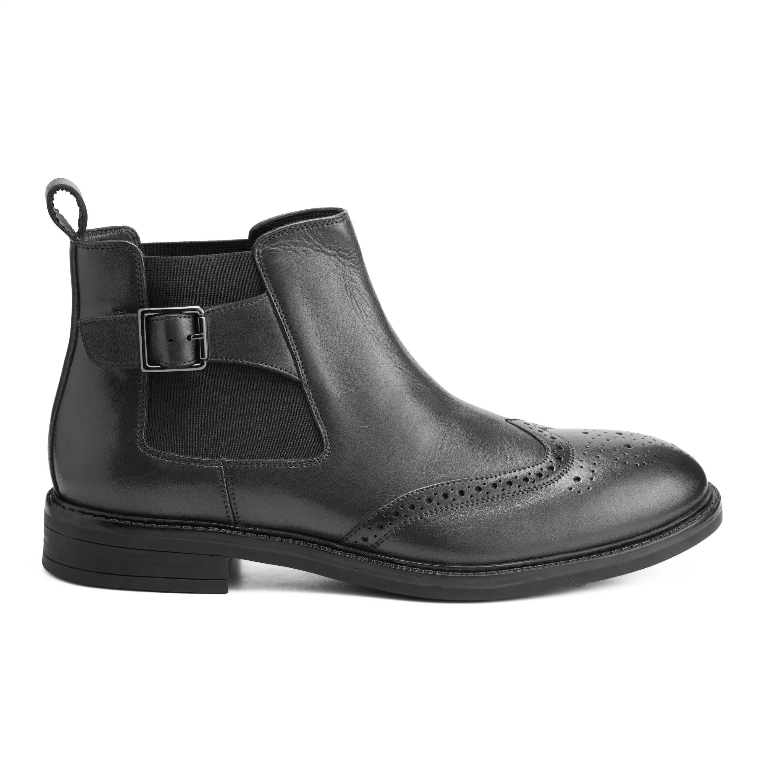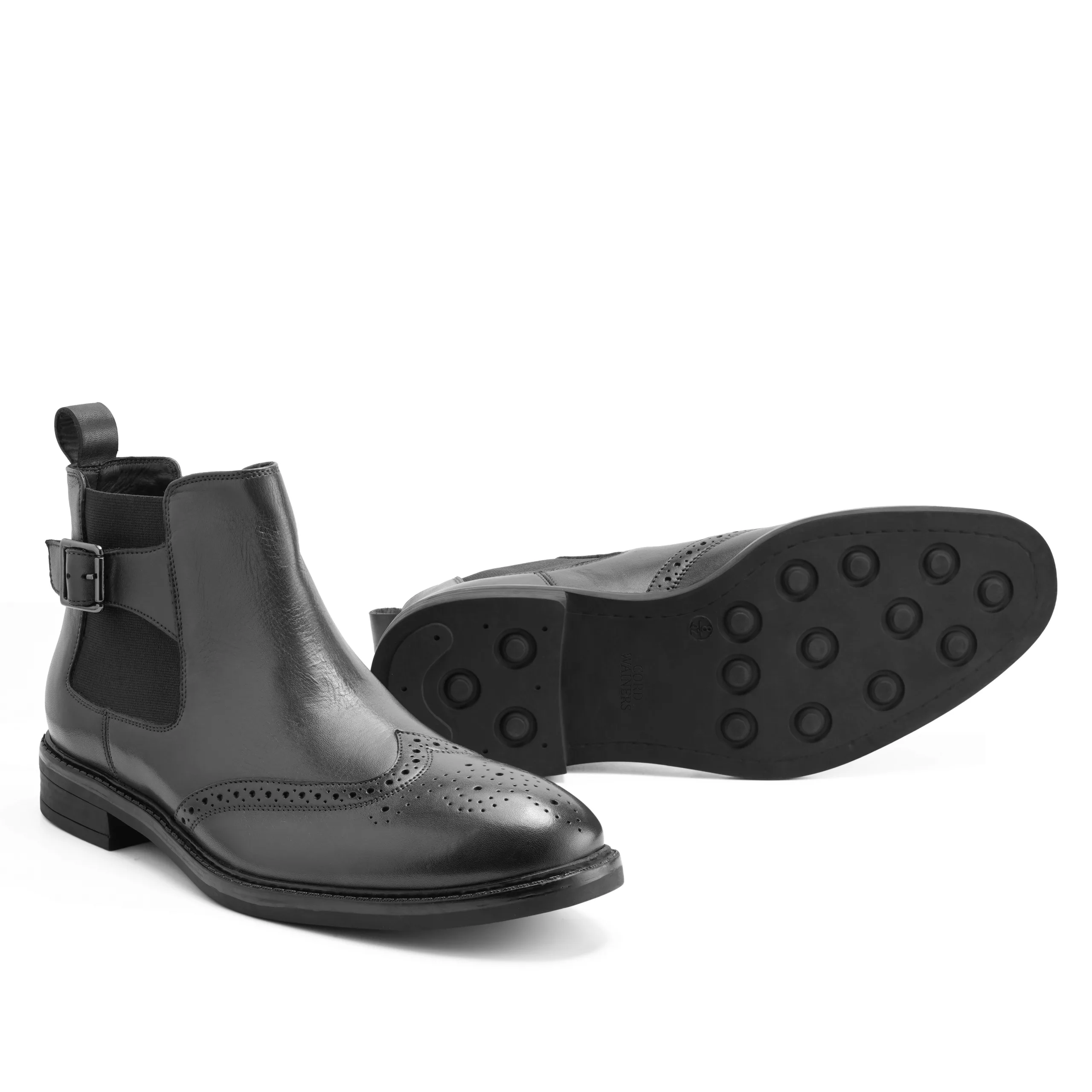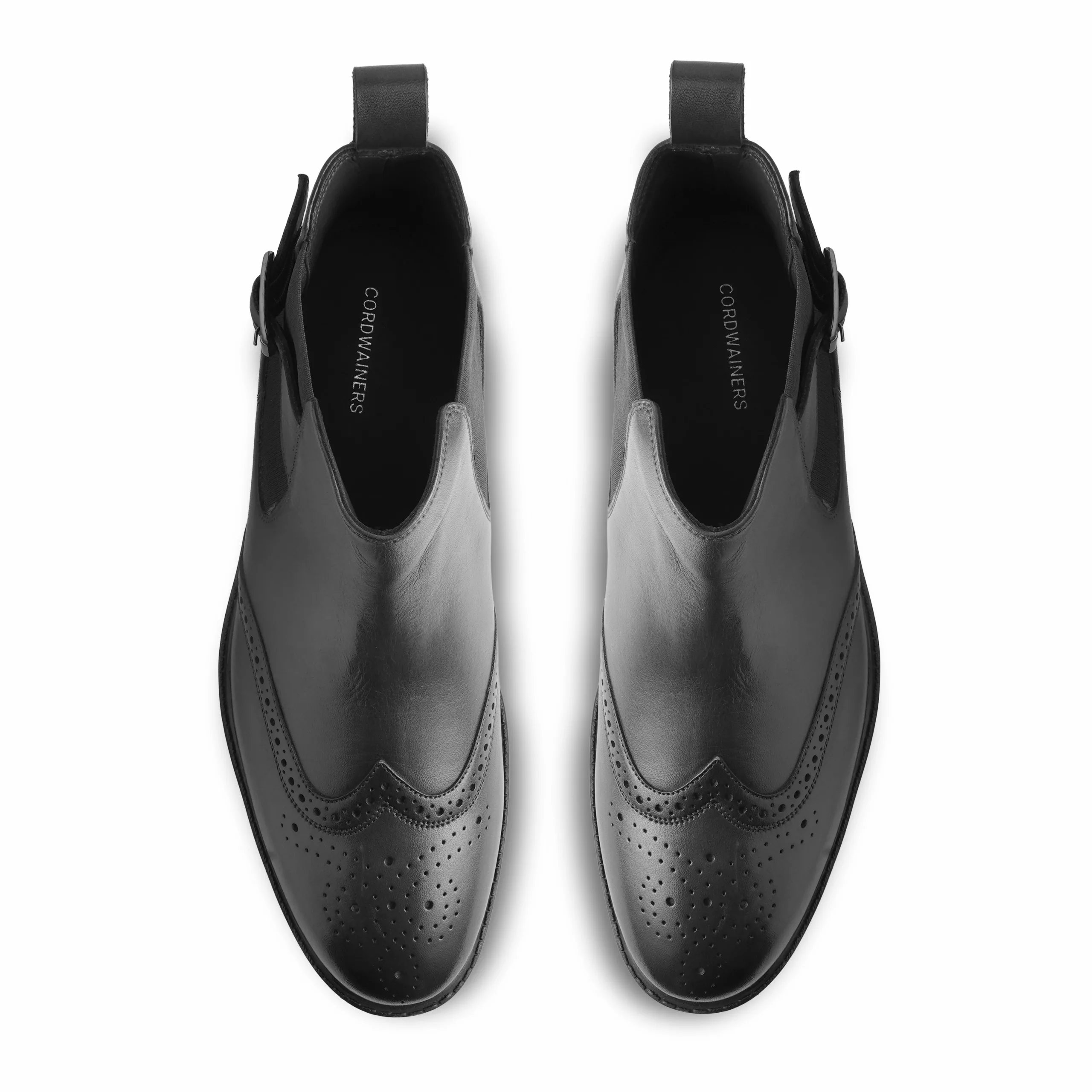 The Blake Chelsea Boot by CORDWAINERS is crafted in premium leather with refined brogue detailing that adds character to its clean silhouette. Designed with elastic side panels and a subtle buckle strap, it offers easy slip-on convenience with a structured fit. The rubber sole ensures reliable grip and everyday durability, making it suitable for long hours. Ideal for both formal settings and smart-casual dressing, this pair balances style and practicality effortlessly. Built for a regular fit, it delivers comfort without compromising on elegance.