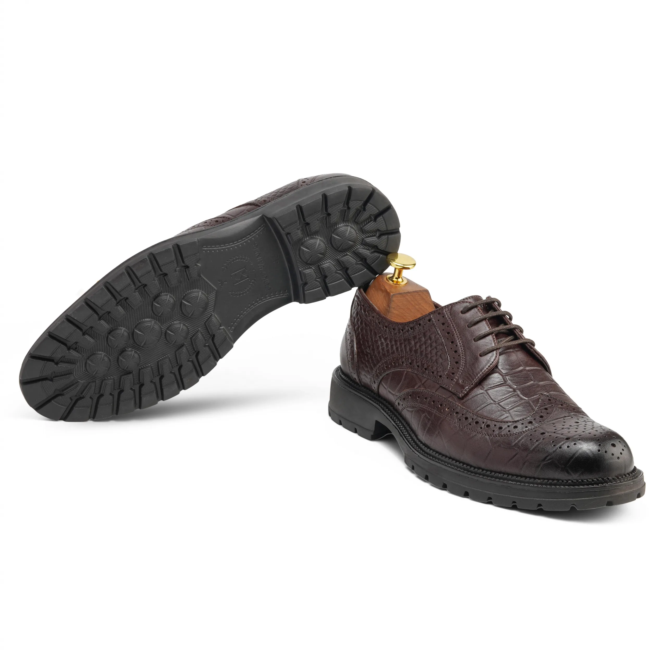 Designed for men who value comfort without compromising on style, these brown leather derby lace-up shoes offer a refined silhouette with modern ease. The lightweight phylon sole ensures all-day comfort, making them ideal for work, travel, and everyday wear.