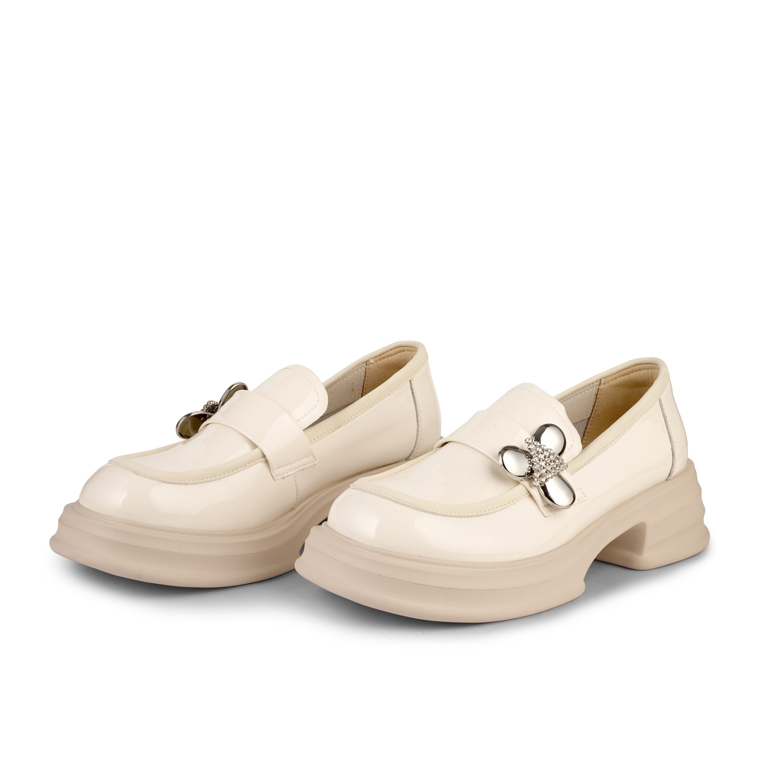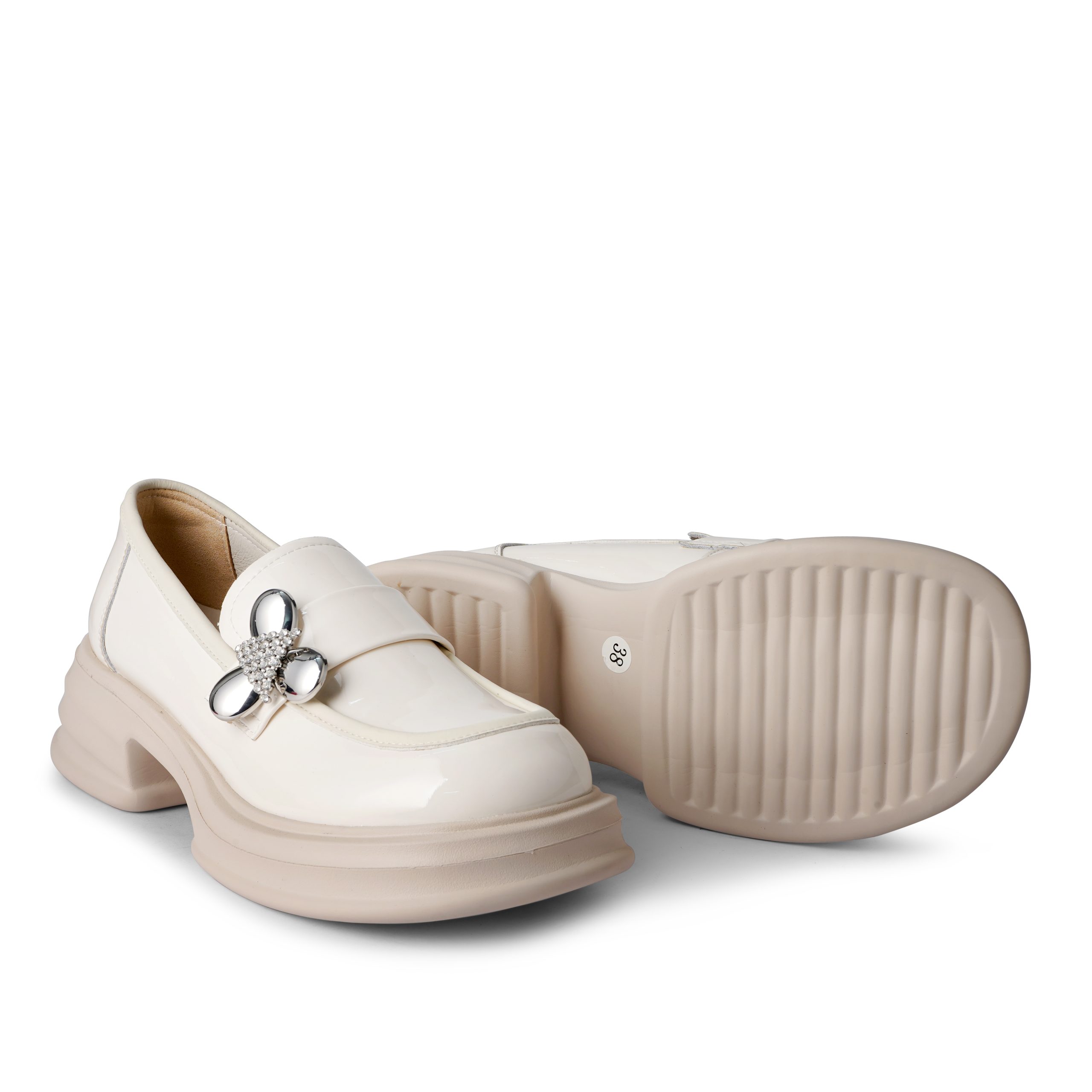 Upheave your fashion sense with our breathtaking Lotto loafers crafted from opulent patent leather. These remarkable shoes showcase a captivating oversized stone embellishment on the side, infusing each step you take with an aura of allure. Not only do they effortlessly enhance your stature, but their cozy construction guarantees that you can triumph over any event with poise and panache. Immerse yourself in a realm where sophistication and ease intertwine by embracing these women’s footwear pieces that make a bold statement.