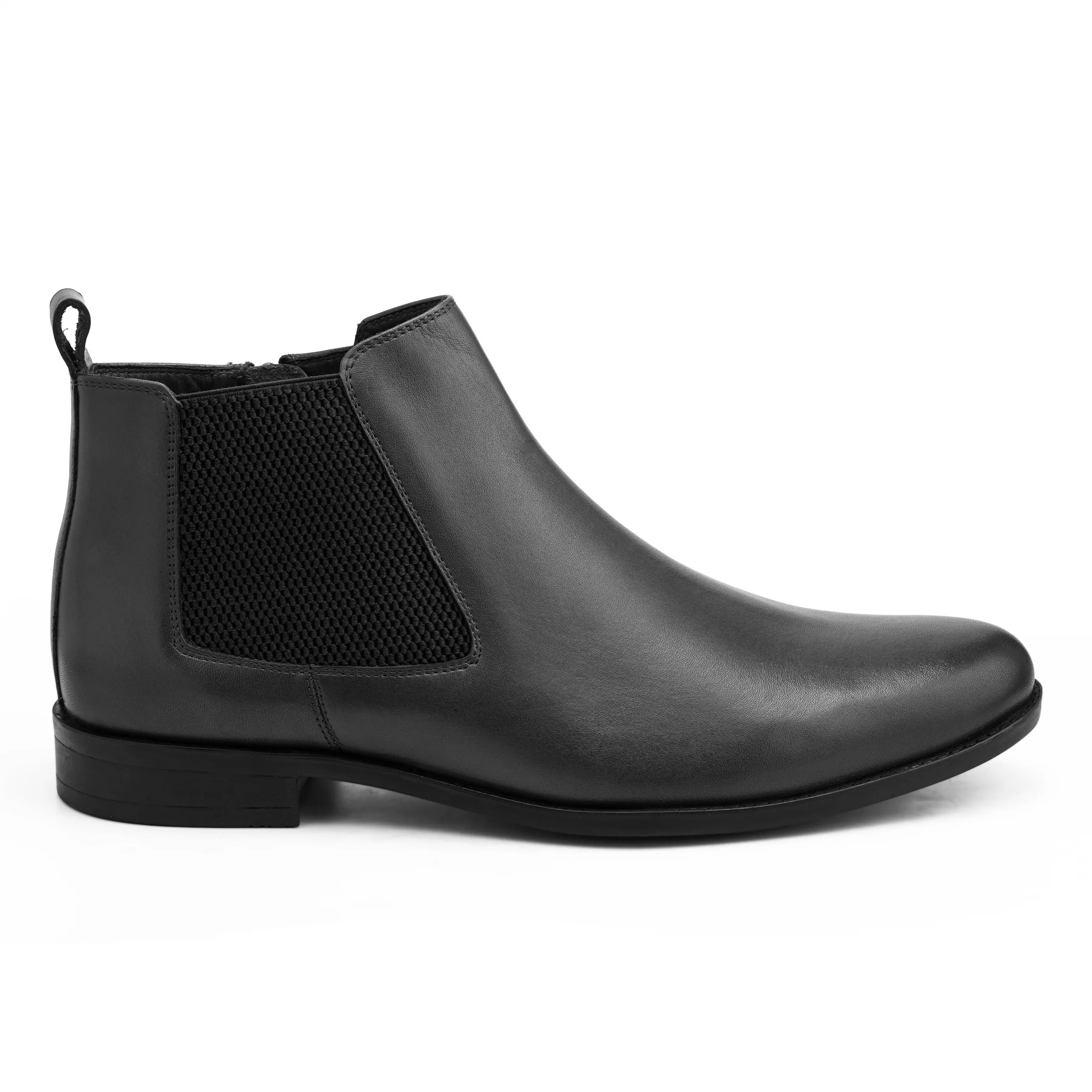 The Halt Chelsea Boot by CORDWAINERS is crafted in premium leather with a clean, minimal design that fits effortlessly into both formal and smart-casual wardrobes. Featuring elastic side panels along with a functional side zipper, it ensures easy wear without compromising on structure. The rubber sole offers dependable grip and durability for everyday use. Designed in a regular fit, it provides comfort for long hours. Available in classic black and deep dark brown (Brun), it’s a versatile essential for modern dressing.