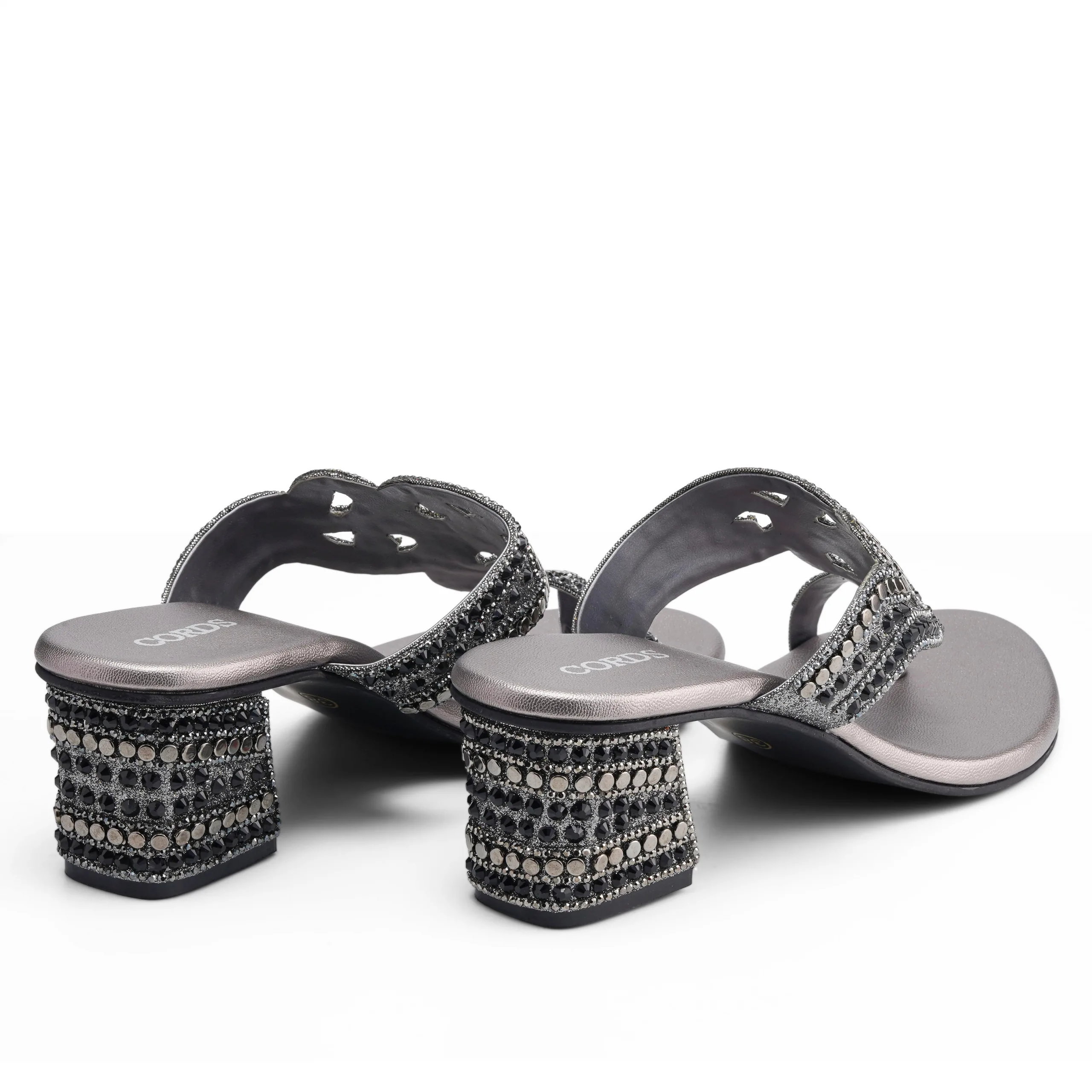 These black block heel slippers add a refined touch to any outfit — a must-have pair for every woman’s party wardrobe.