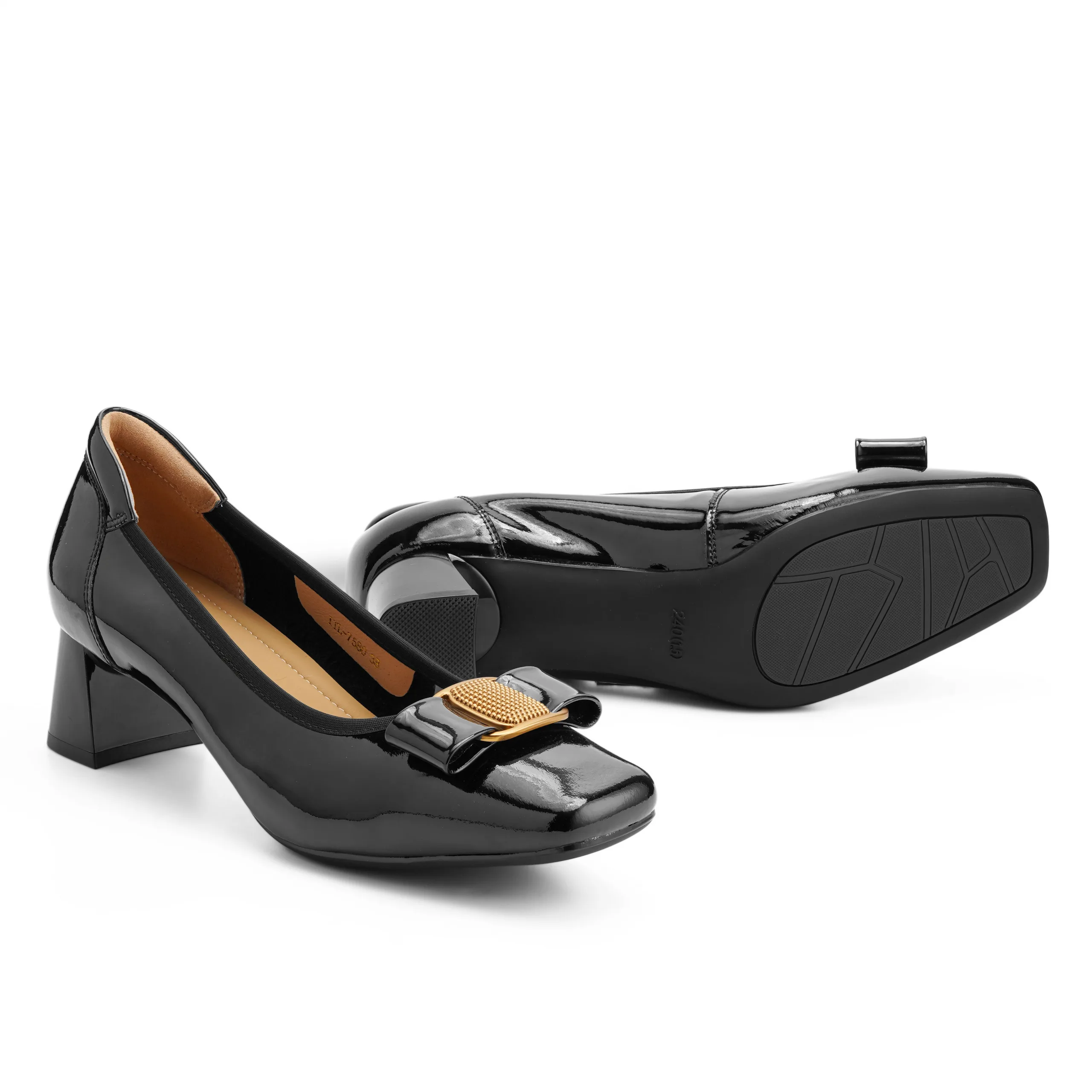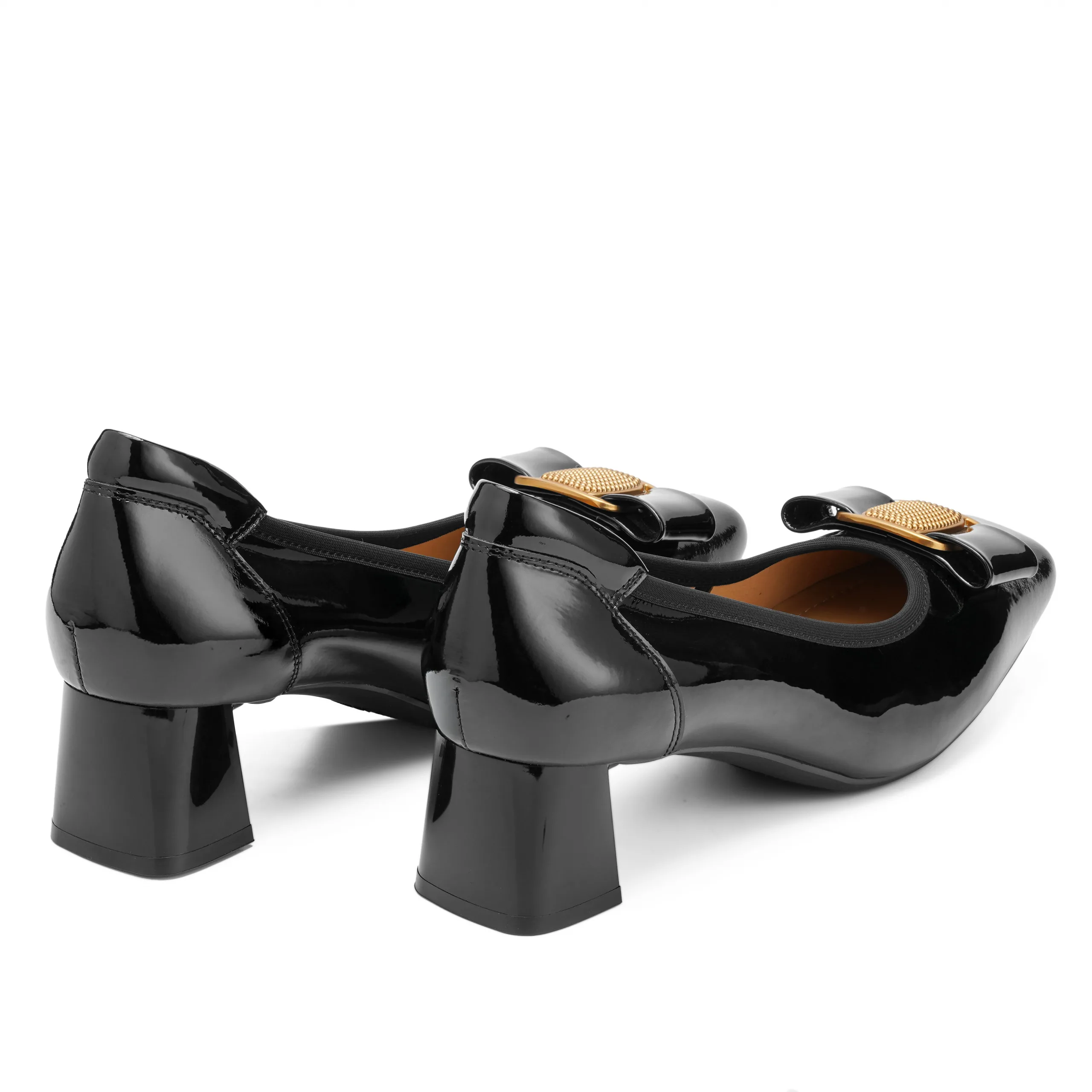 Elegance meets comfort in these women’s Black patent leather block heels. Designed with a modern matte golden buckle, they bring sophistication to every step while ensuring unmatched comfort for all-day wear.