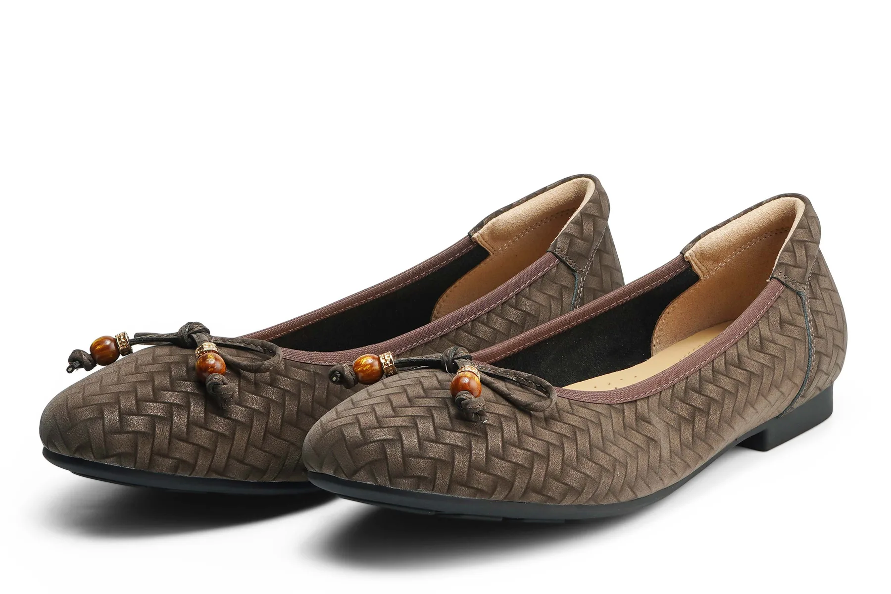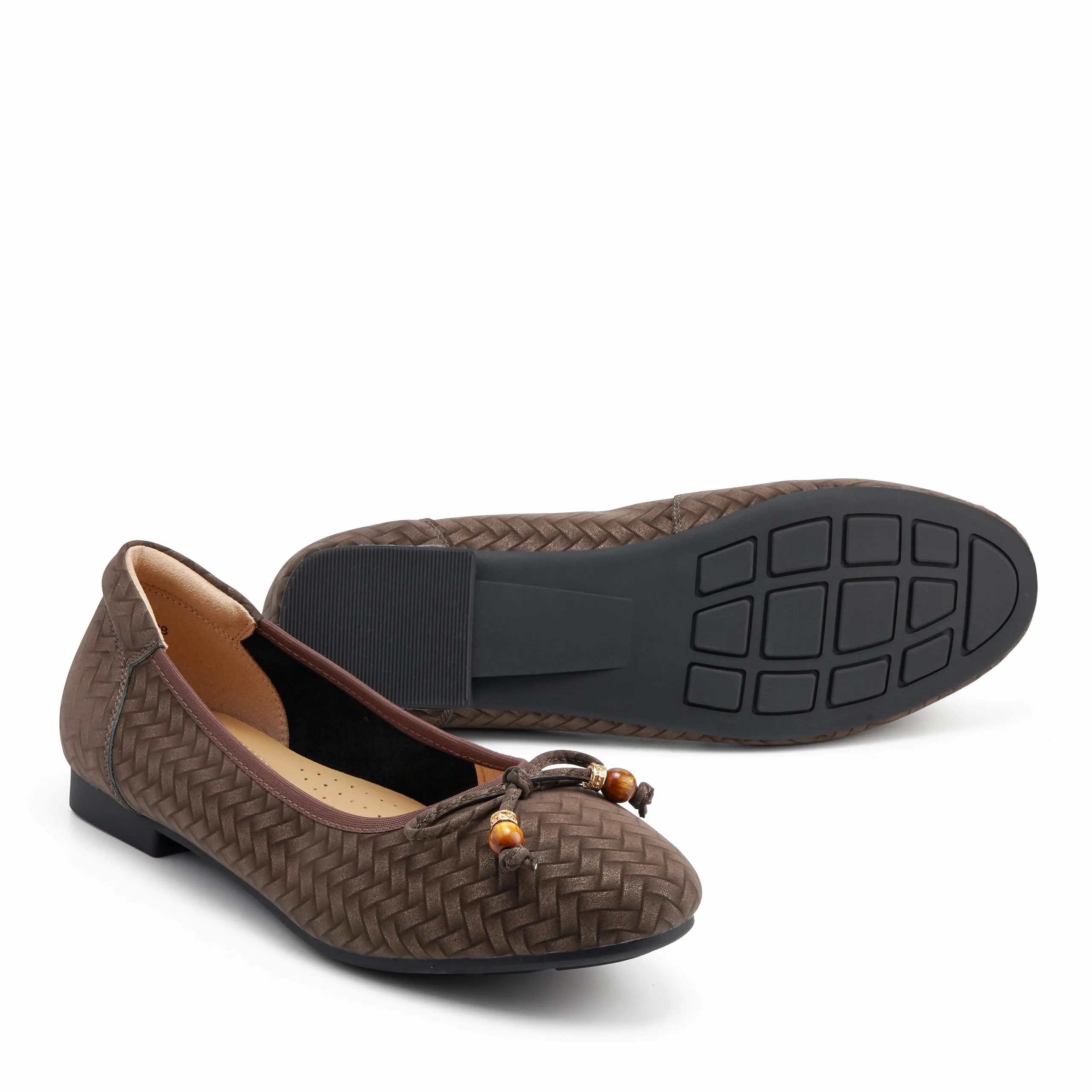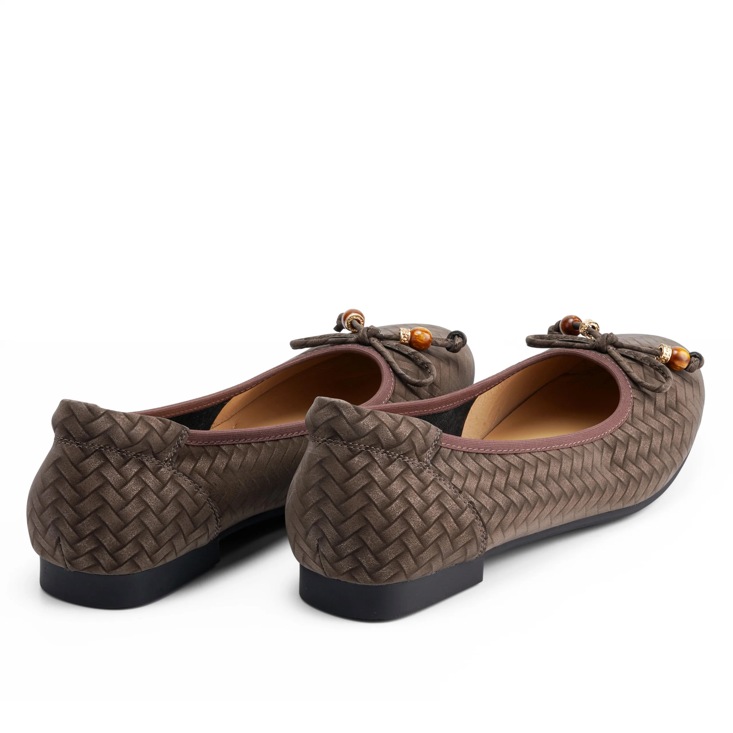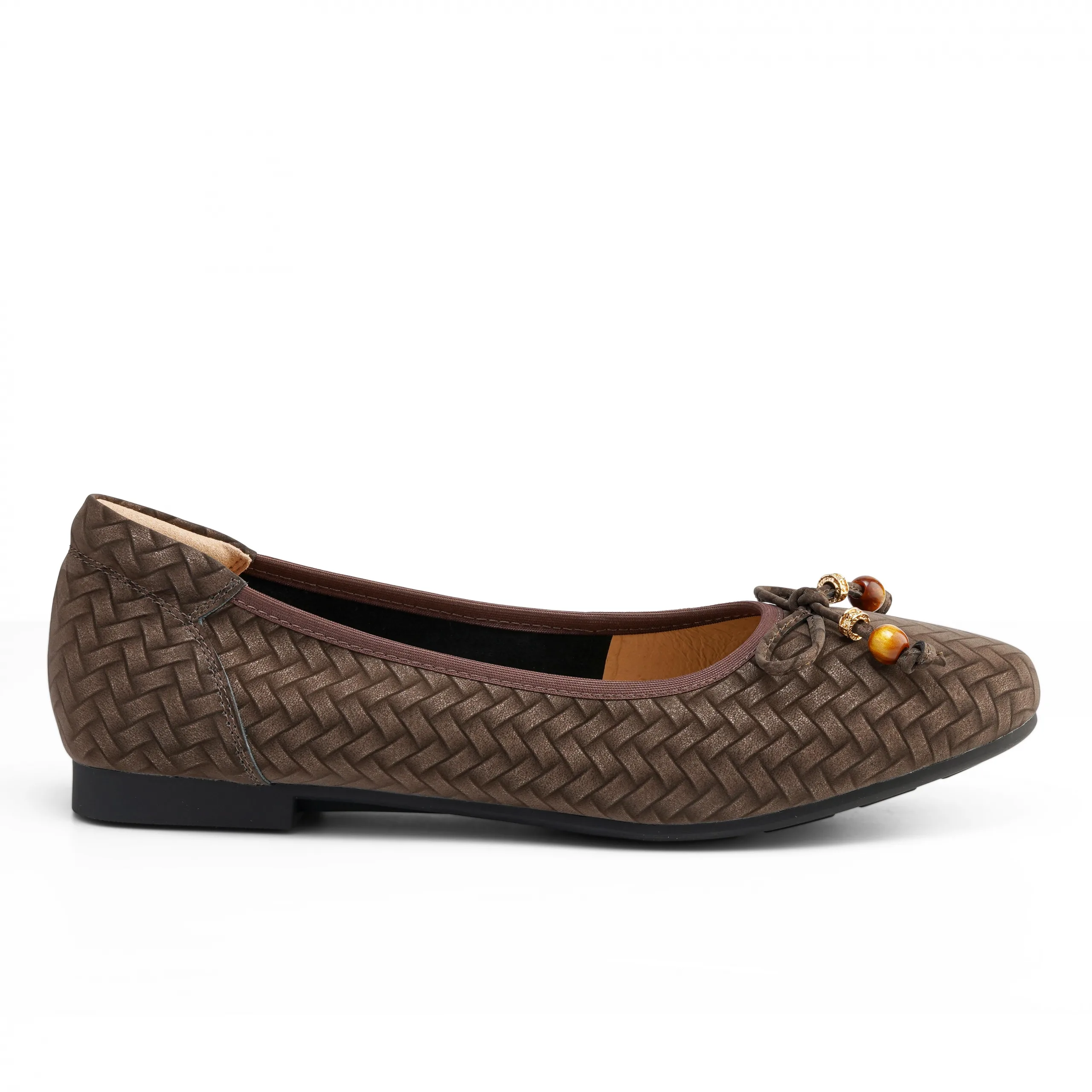 Step into effortless comfort and style with this Coffee leather flat bally, featuring a woven print that adds subtle texture and sophistication. Designed for women who value elegance and ease, it’s perfect for all-day wear — from office hours to casual outings.