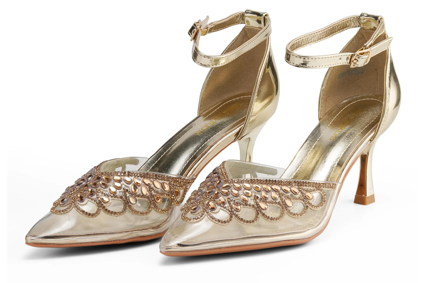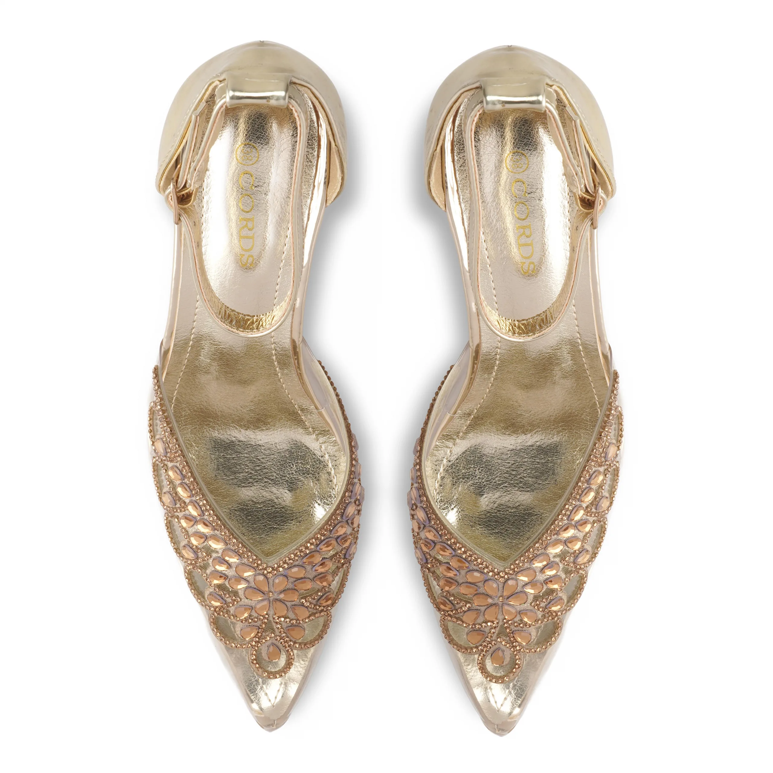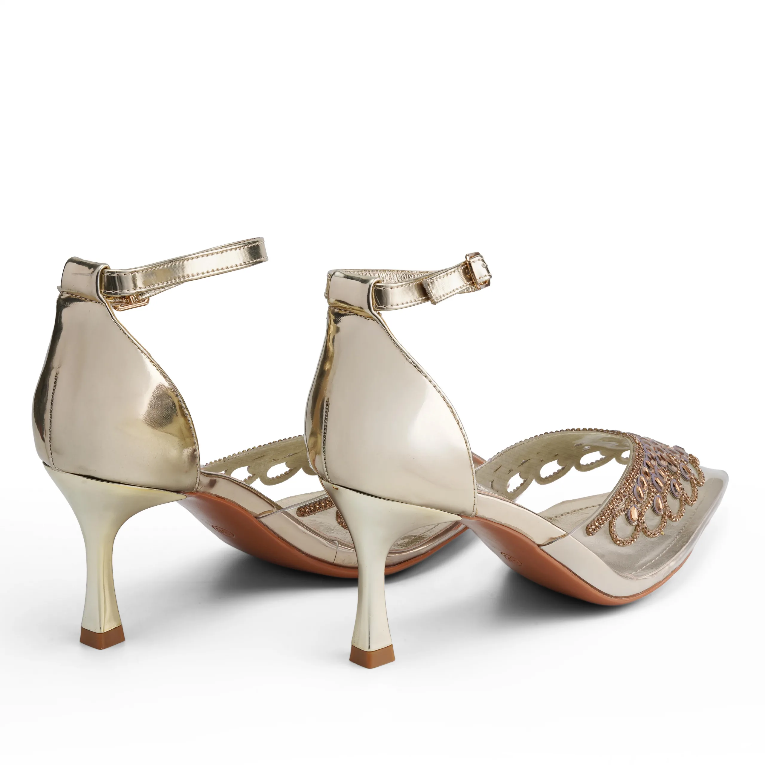 Make a statement in simplicity with these Golden transparent TPU pencil heel sandals, designed for women who love effortless elegance. The soft TPU upper provides flexibility and comfort, while the TPR sole offers balance and durability — perfect for both festive and casual wear.