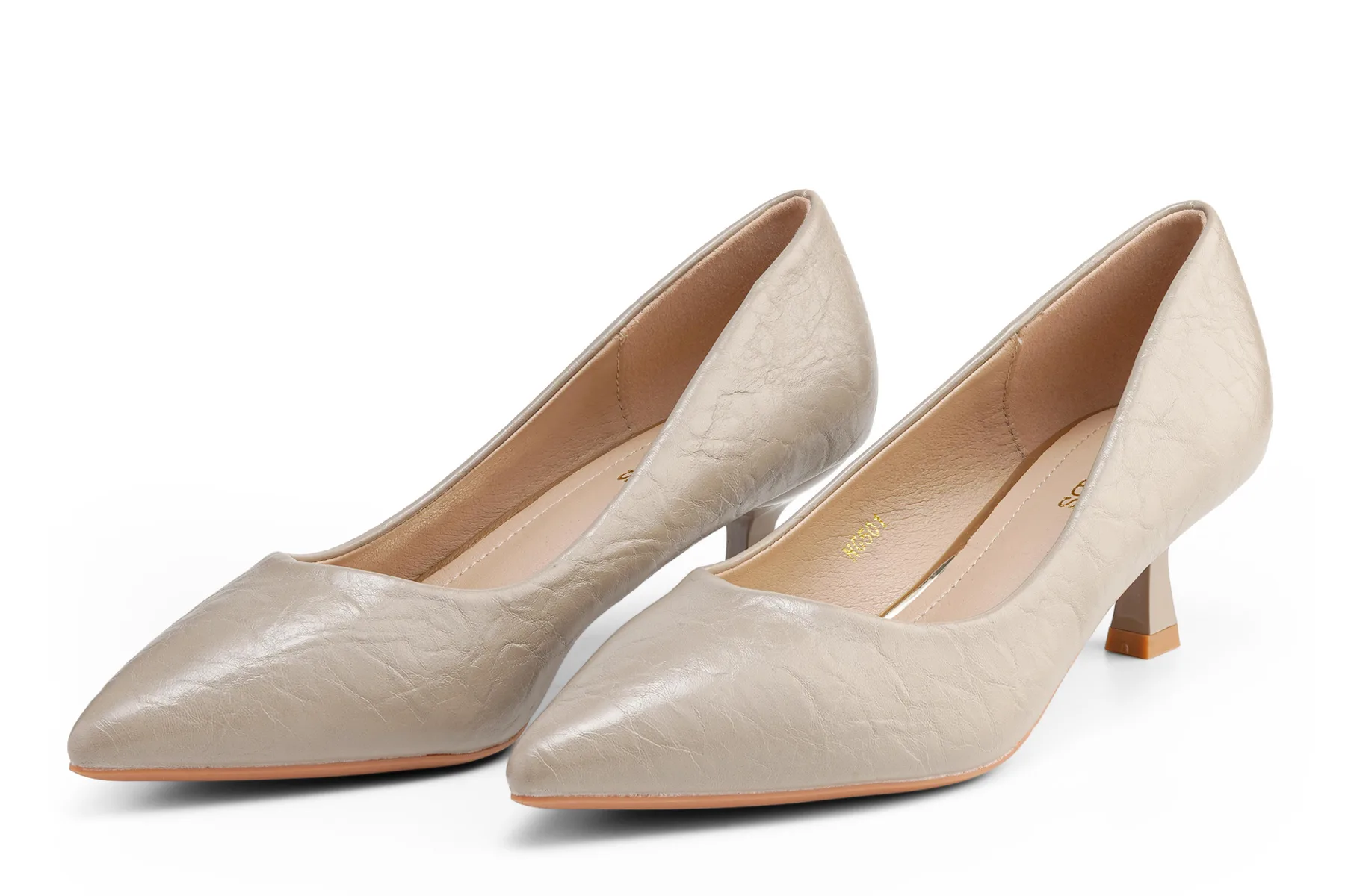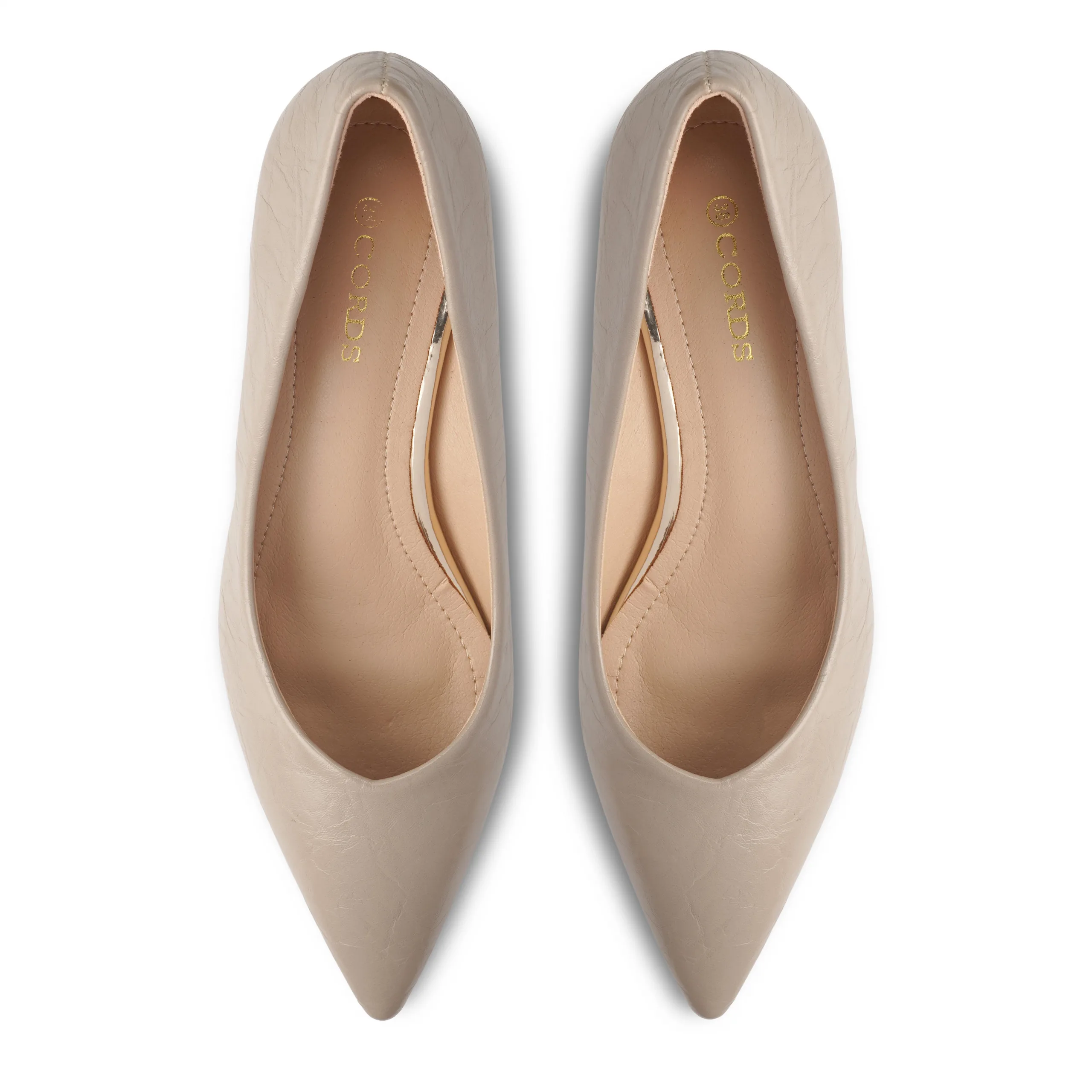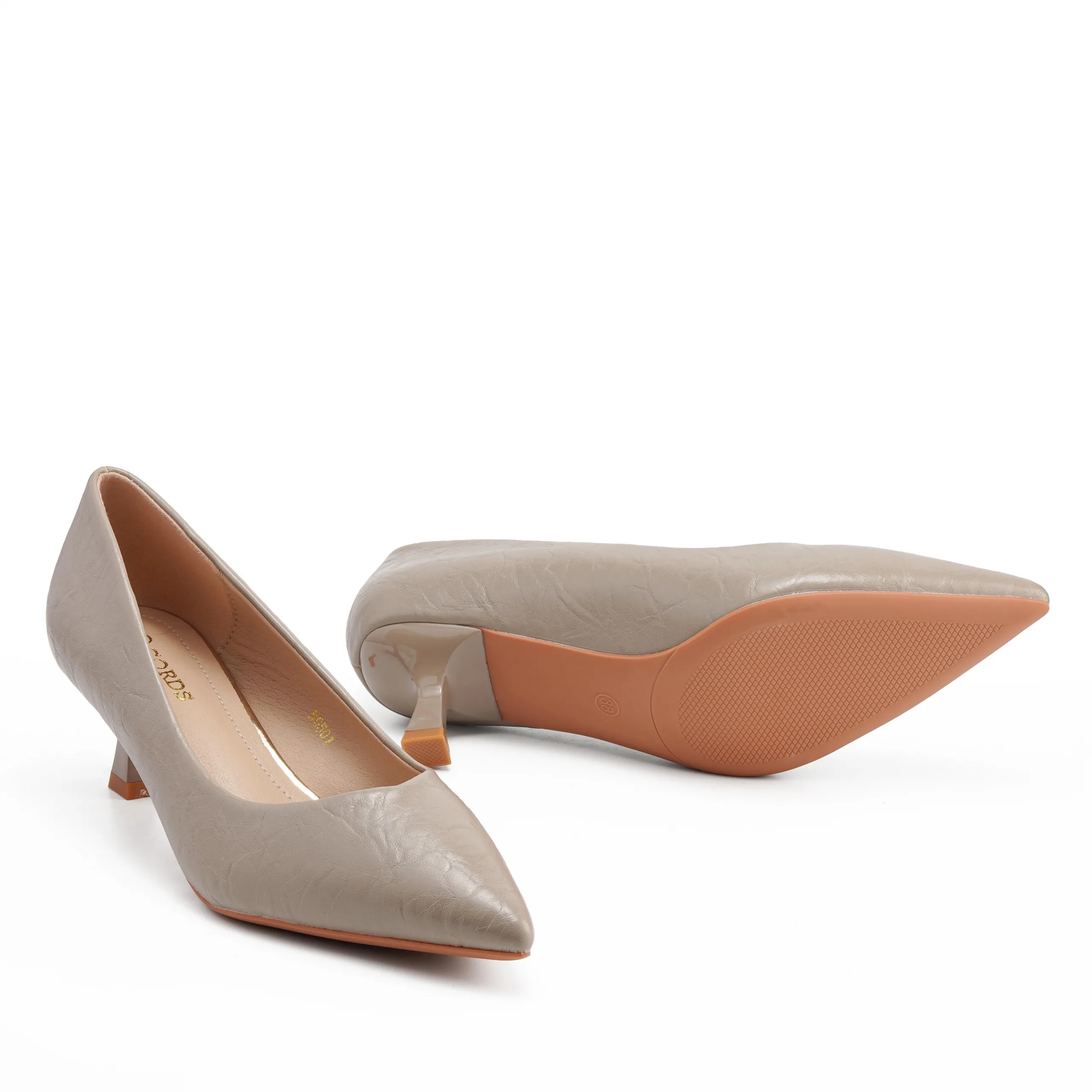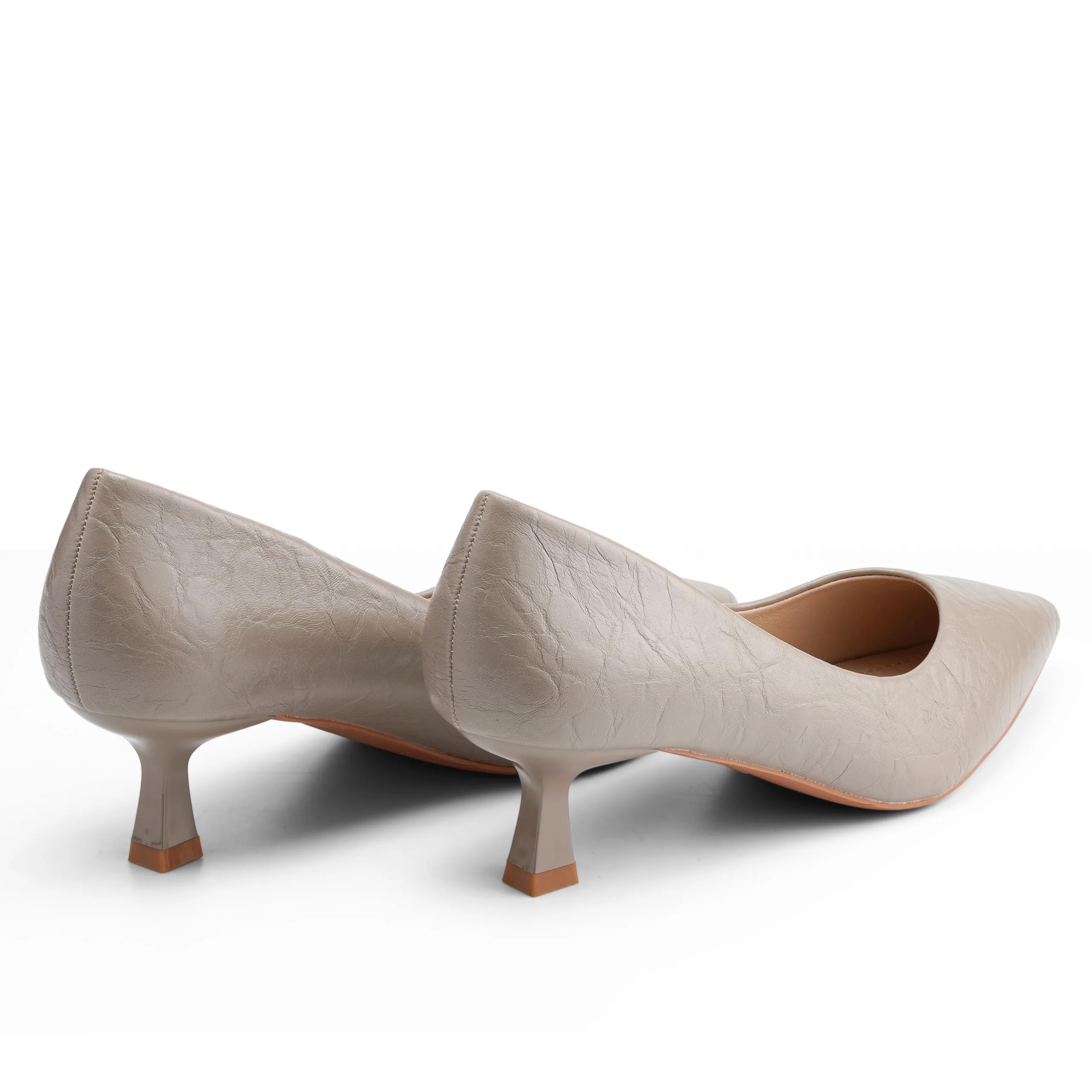 Add a touch of subtle sophistication to your look with this khaki tumbled leather pencil heel bally, crafted for women who value comfort and refined design. The tumbled texture adds character, while the pointed toe and TPR sole ensure stability, style, and ease in every step.