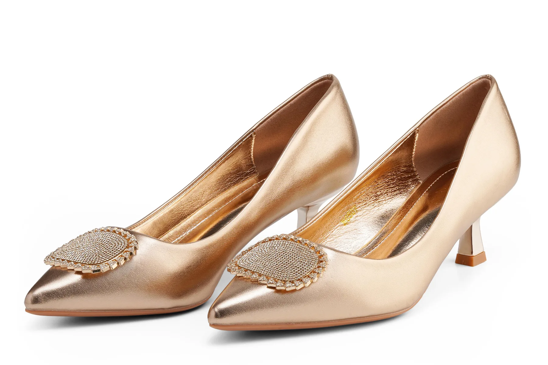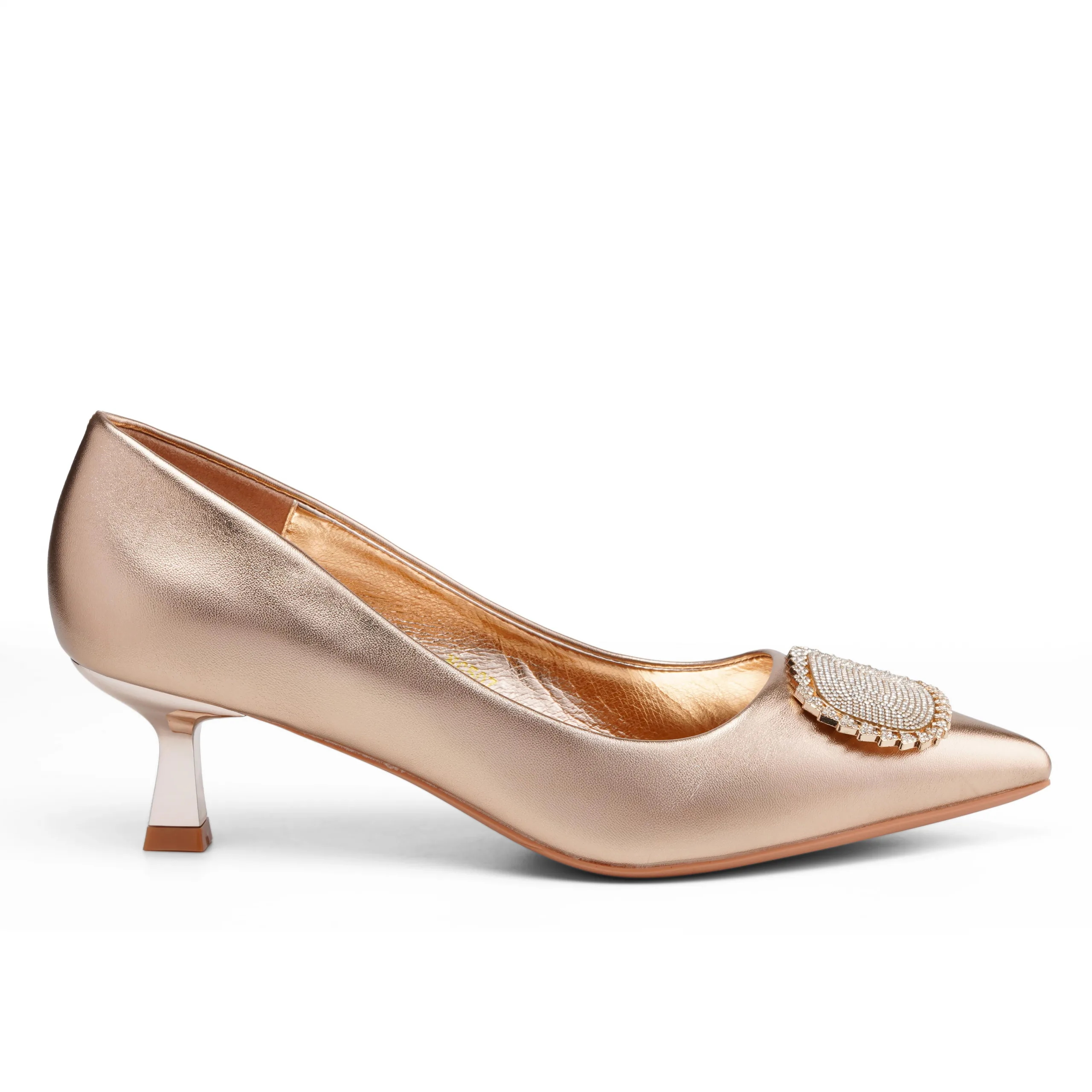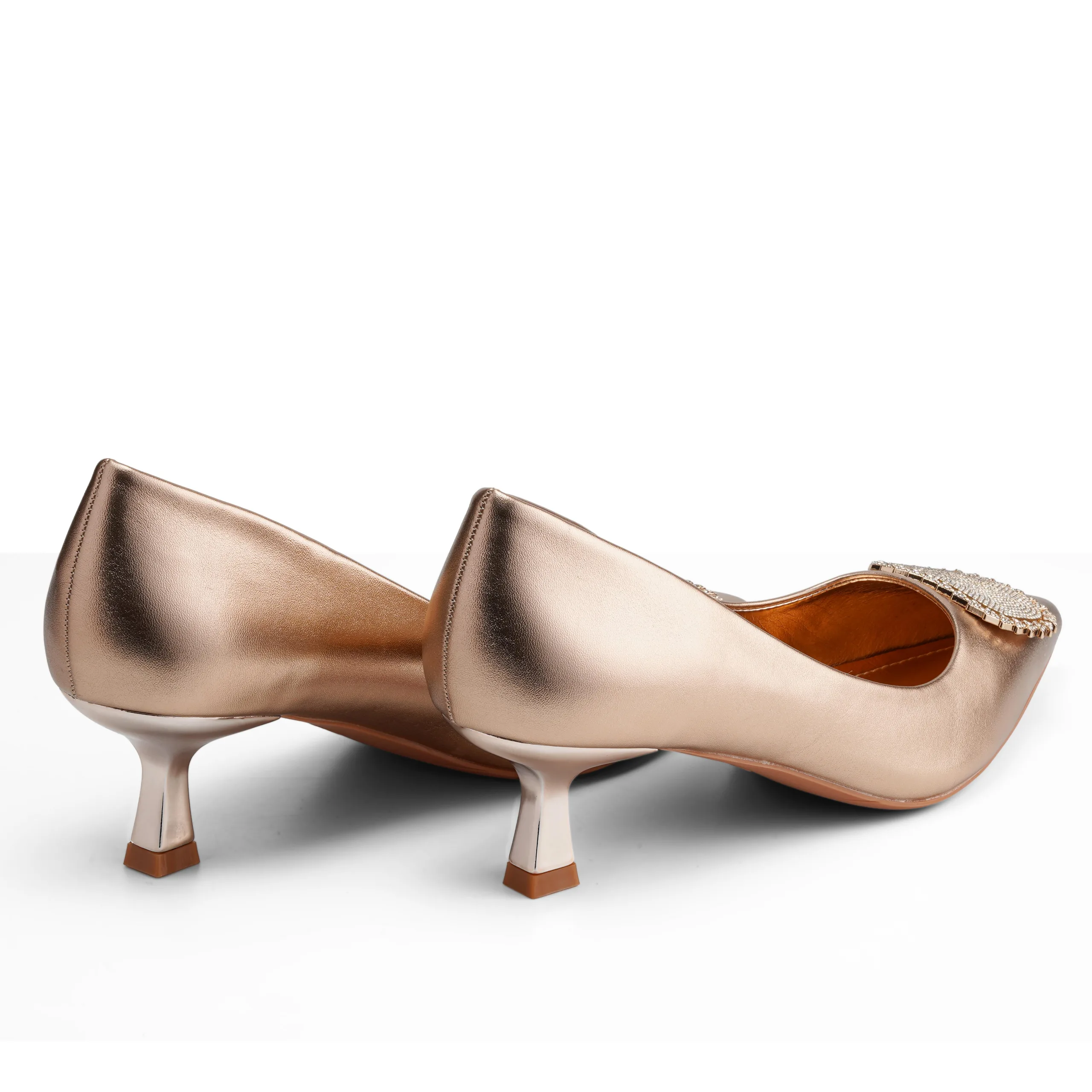 Shine with subtle sophistication in this rose gold leather pencil heel bally, crafted for women who love a balance of elegance and comfort. Featuring a pointed toe design and a TPR sole for lightweight flexibility, this pair brings timeless glamour to every occasion.