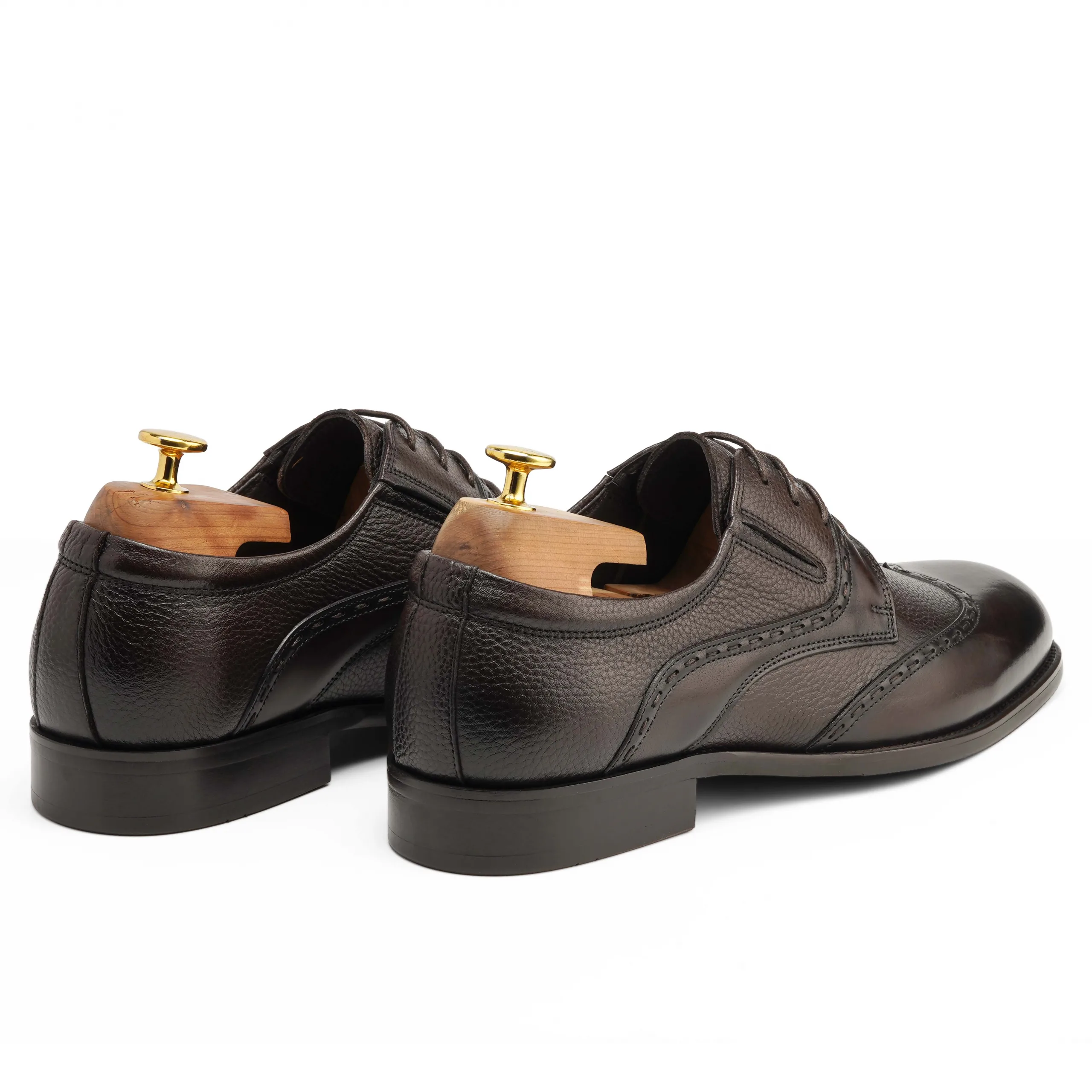 Designed for men who demand both refined style and superior comfort, these brown leather derby shoes feature a wide fit construction paired with a classic wooden heel. The premium leather upper is treated to minimize wrinkles on the vamp, ensuring a polished look even after long hours of wear.