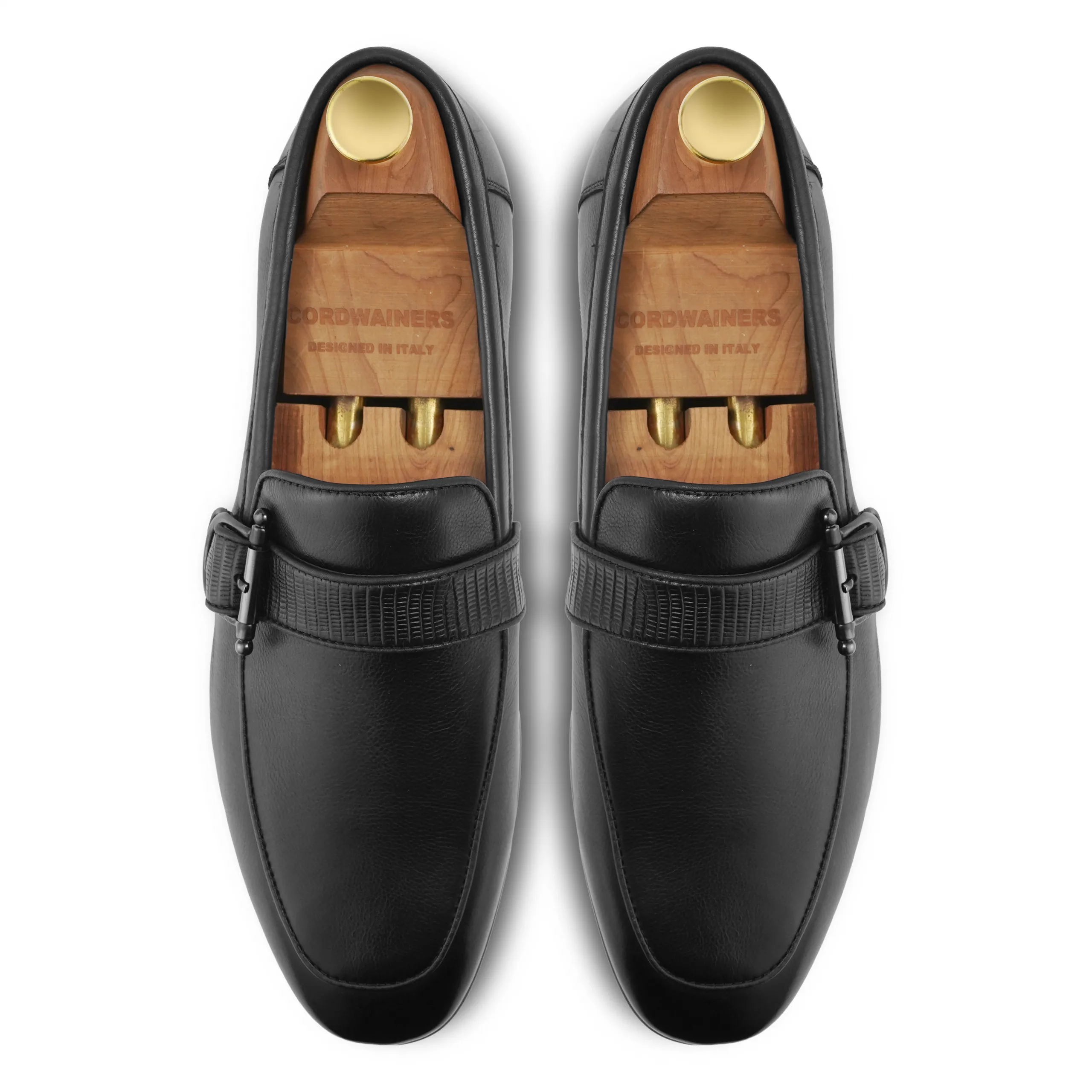 - Design: Lace-free single monk slip-on style