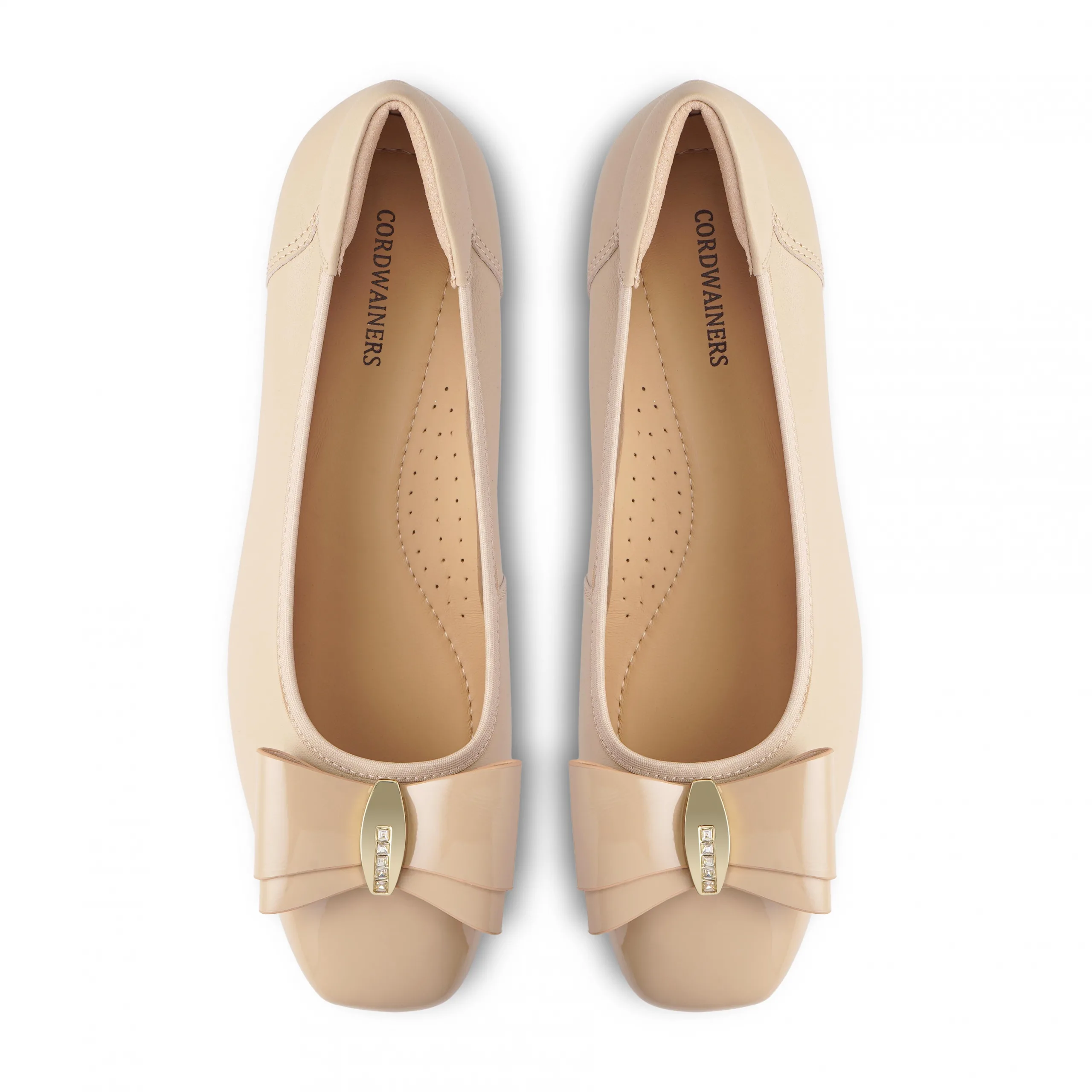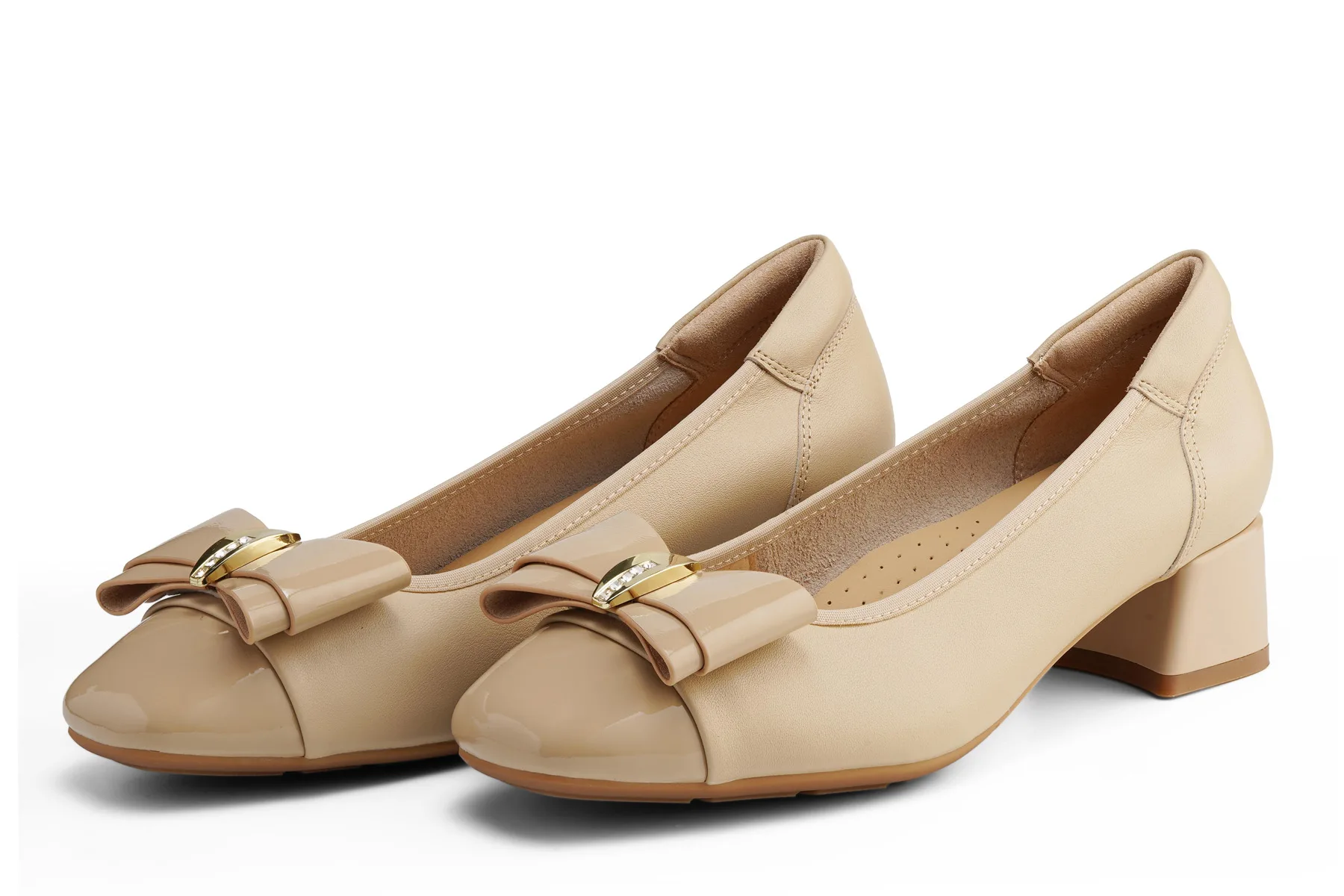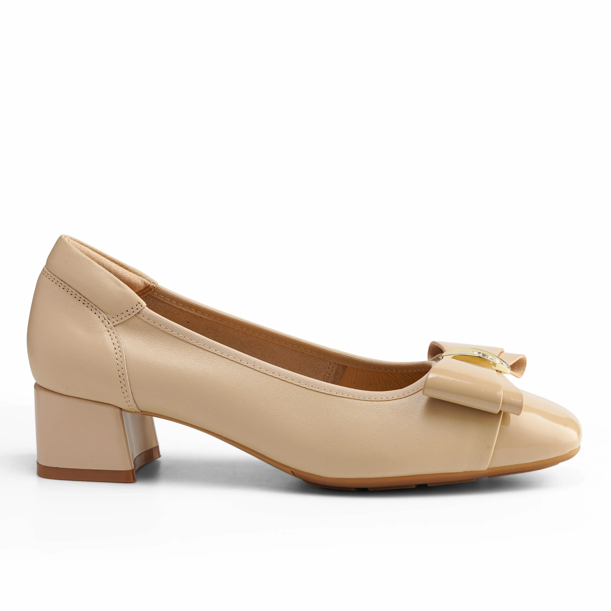 Experience unmatched comfort and elegance with this Beige leather block heel bally, designed with extra cushioning and a wide, supportive fit. Crafted from soft genuine leather and paired with a rubber sole, it offers lasting comfort for women who are always on the move.