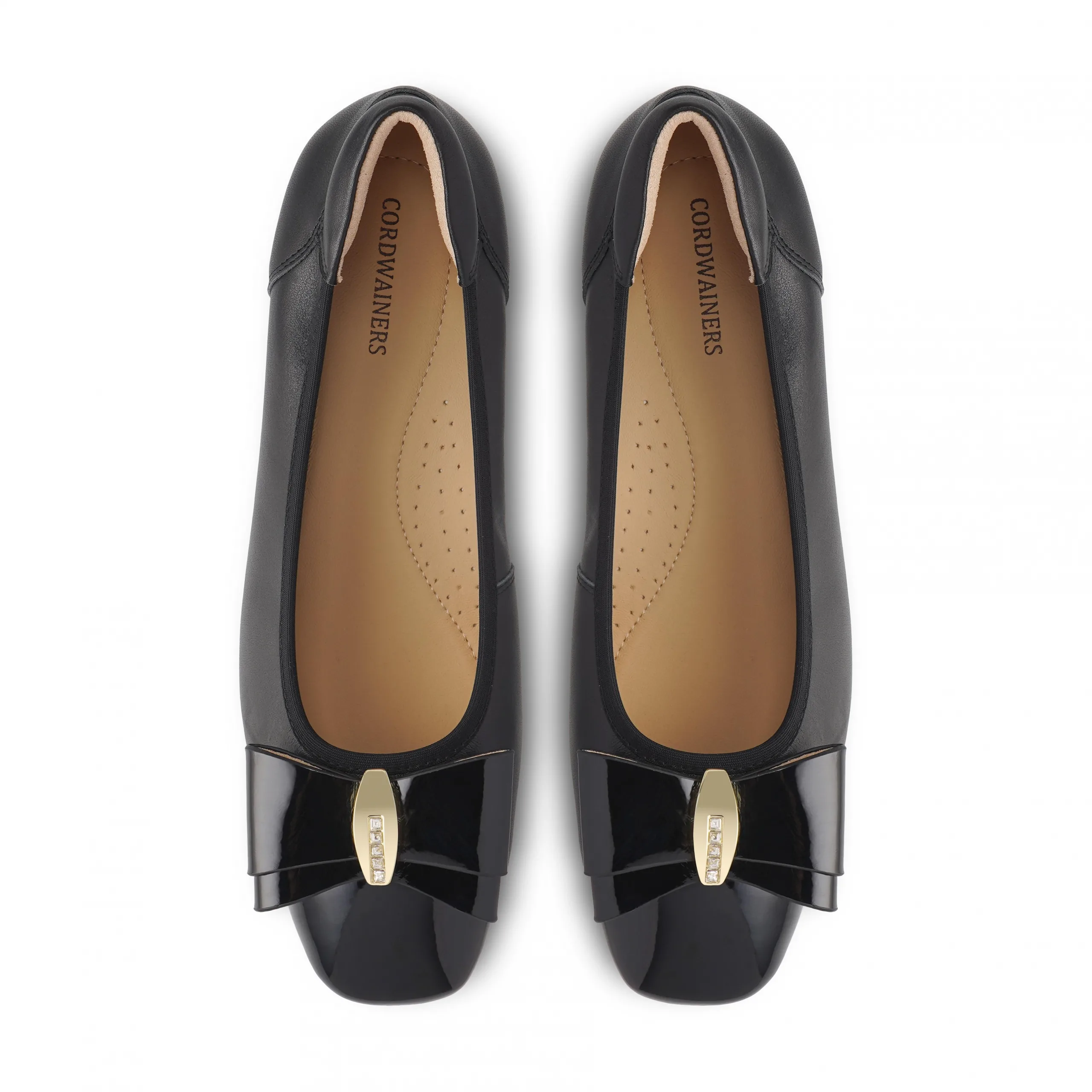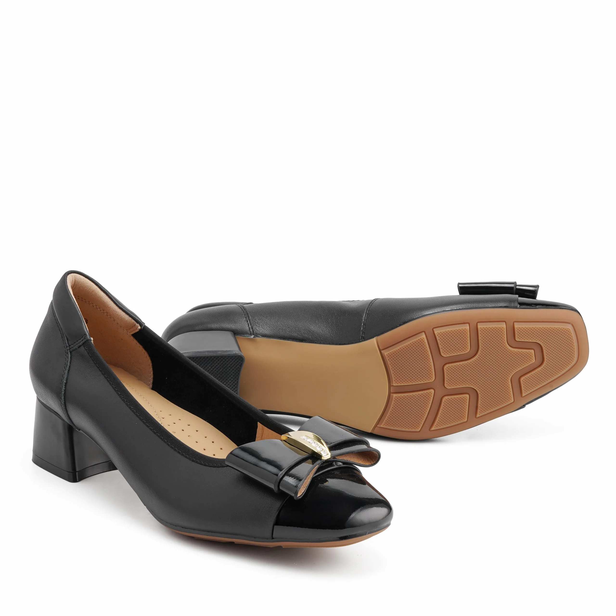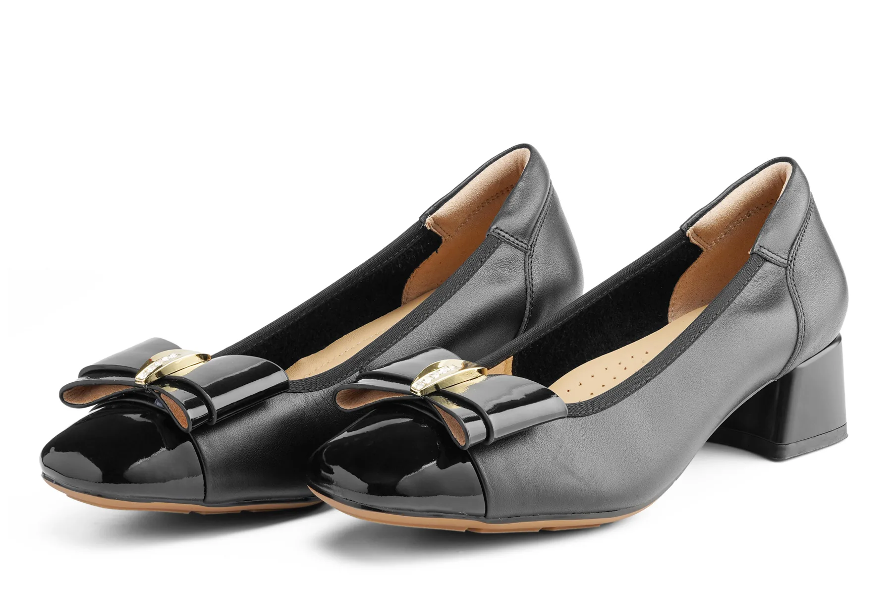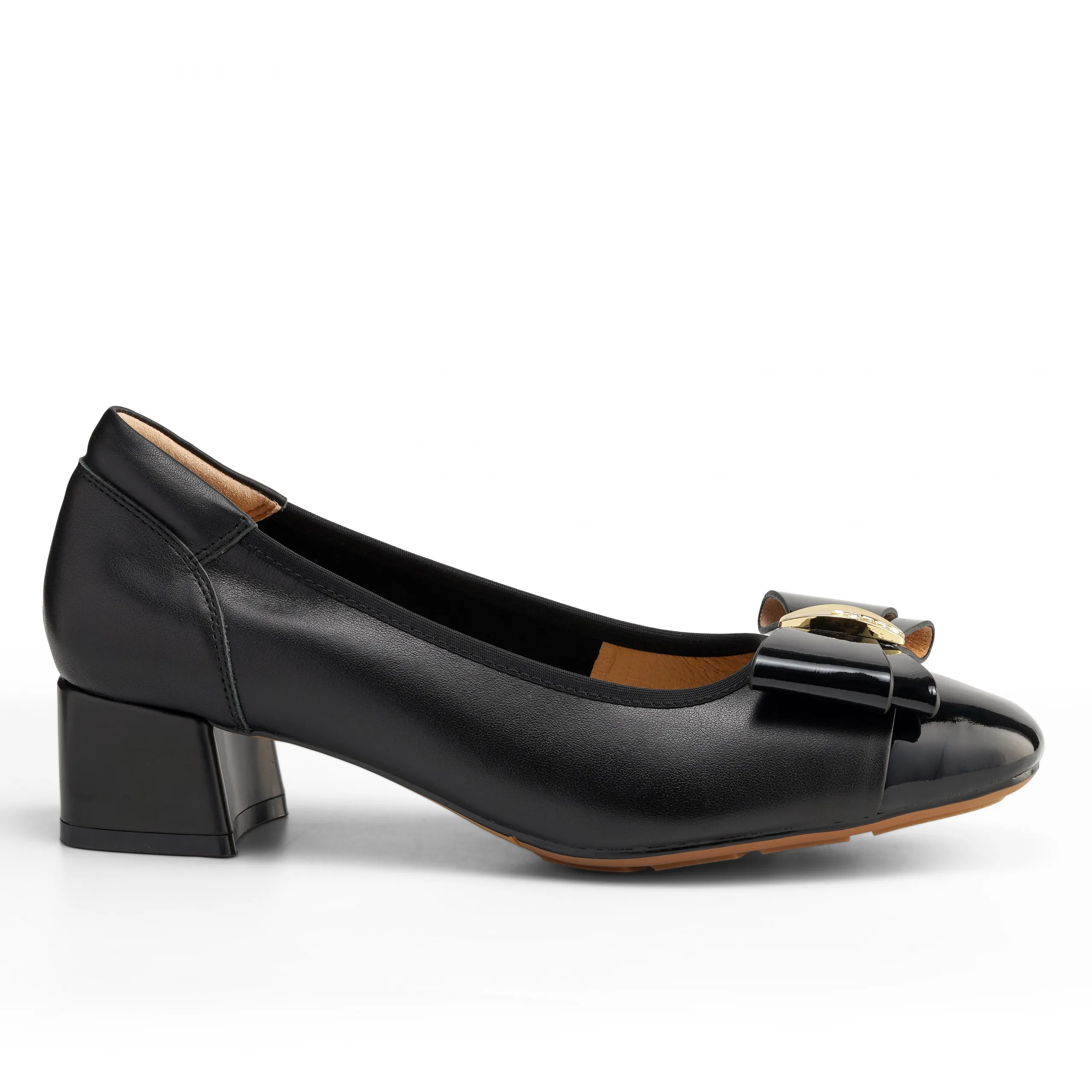 Experience unmatched comfort and elegance with this black leather block heel bally, designed with extra cushioning and a wide, supportive fit. Crafted from soft genuine leather and paired with a rubber sole, it offers lasting comfort for women who are always on the move.