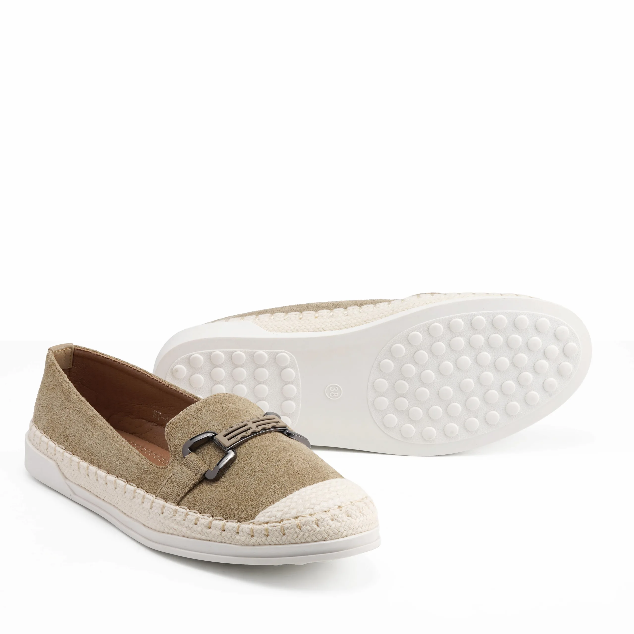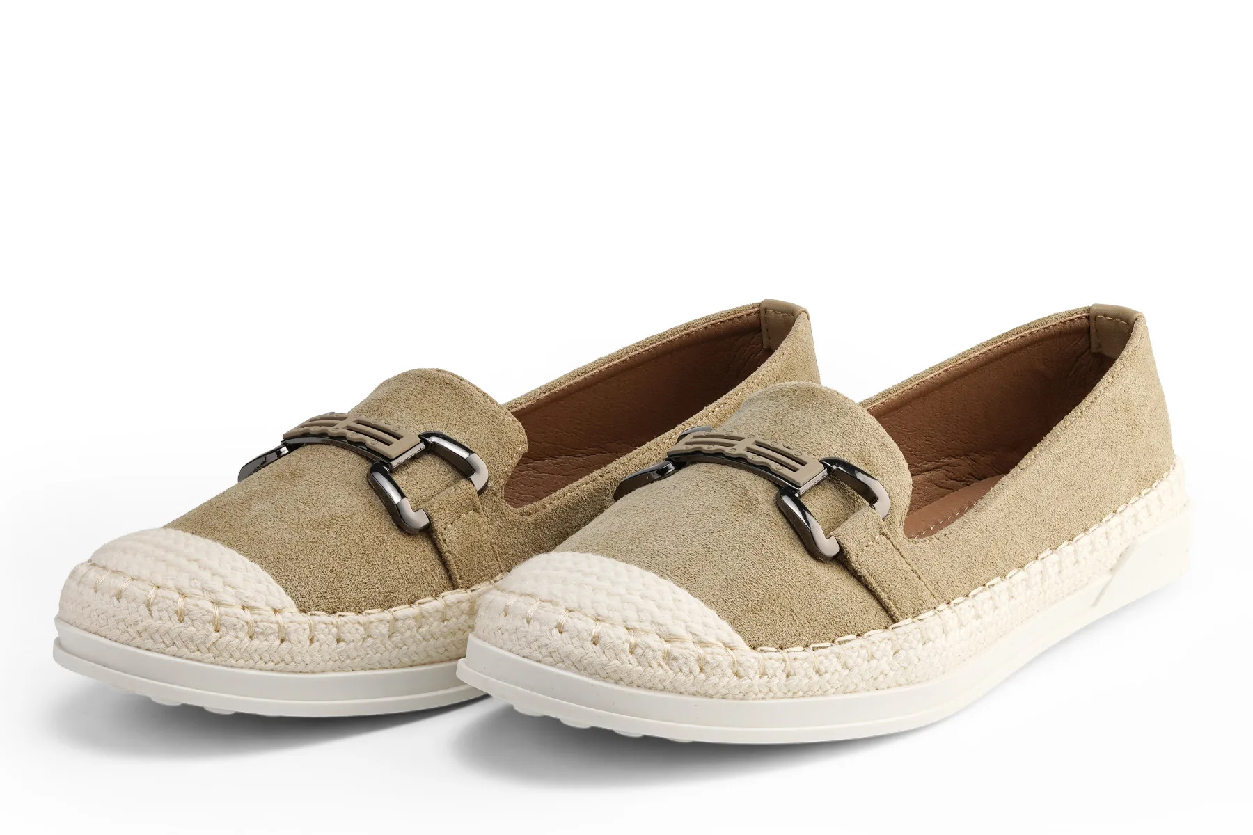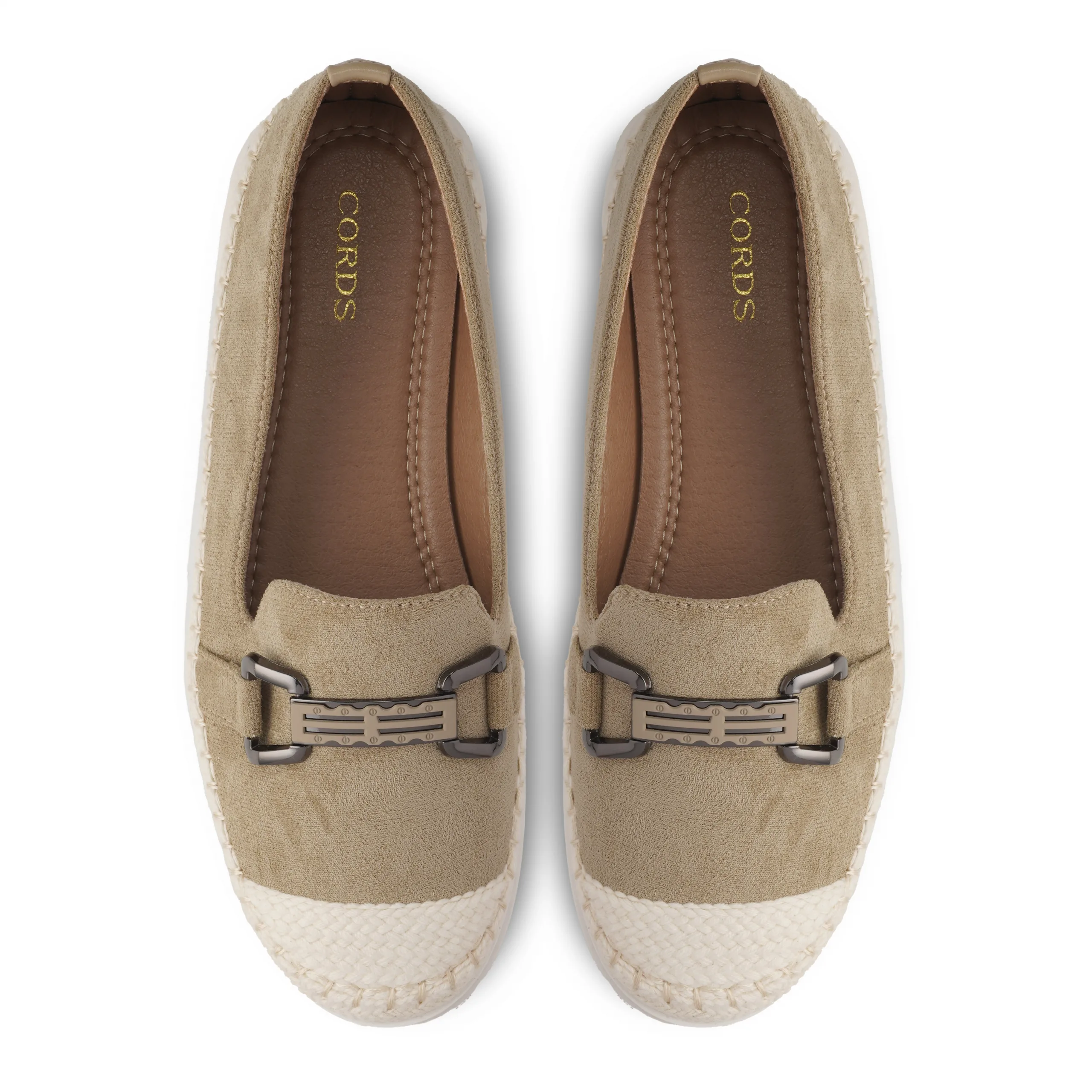 Enjoy relaxed sophistication with these khaki fabric loafers, tailored for women who value both comfort and casual charm. The soft fabric upper provides a breathable fit, while the rubber sole ensures grip, durability, and flexibility for daily movement.