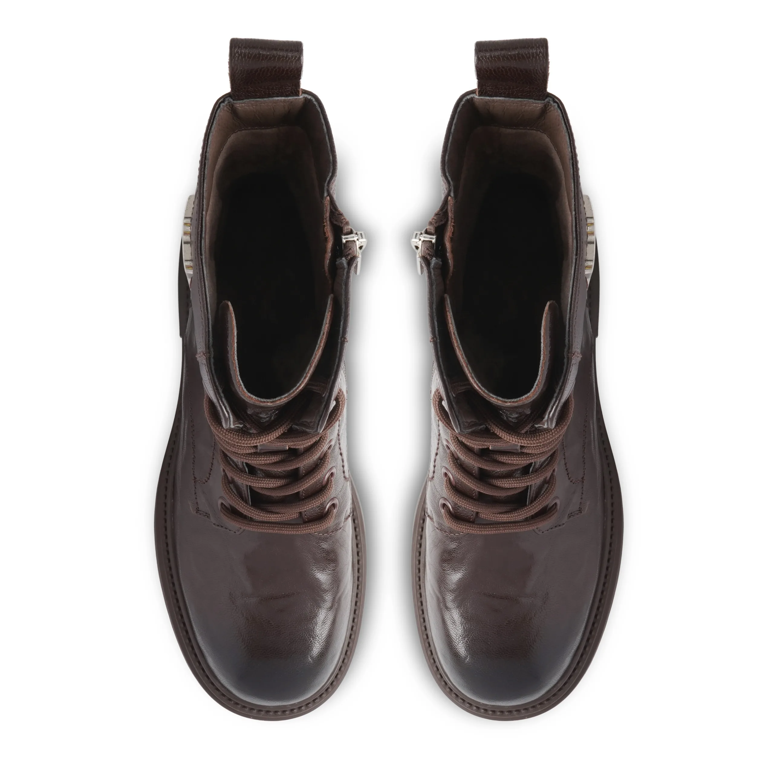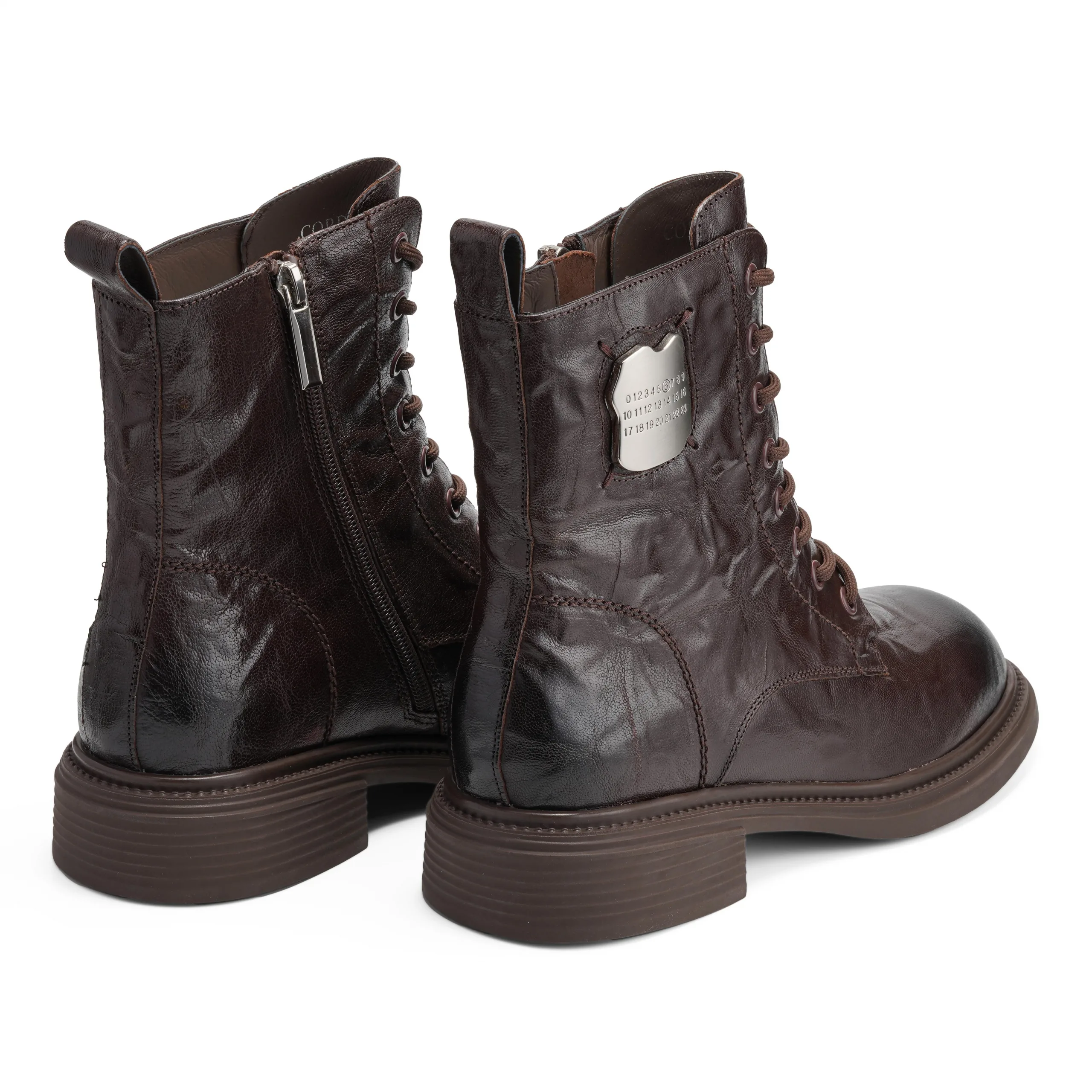 Crafted for modern sophistication and comfort, these Coffee zipper boots combine rugged durability with sleek design. The tumbled leather gives a soft texture and reduced wrinkles, while the combination of zipper and laces ensures a customized fit and effortless wear.