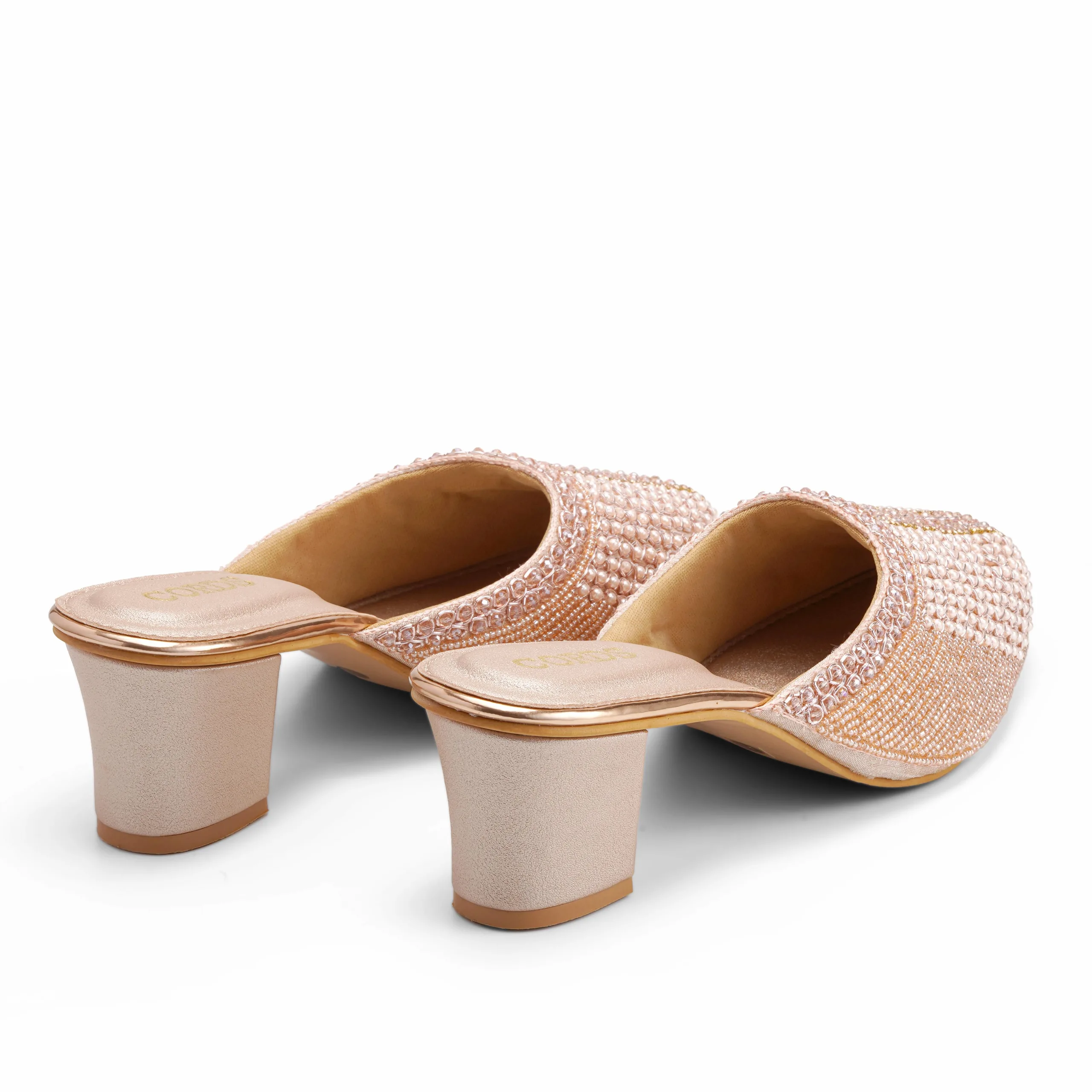 Perfect for festive gatherings or elegant parties, these mules exude a graceful charm while ensuring comfort with every step.