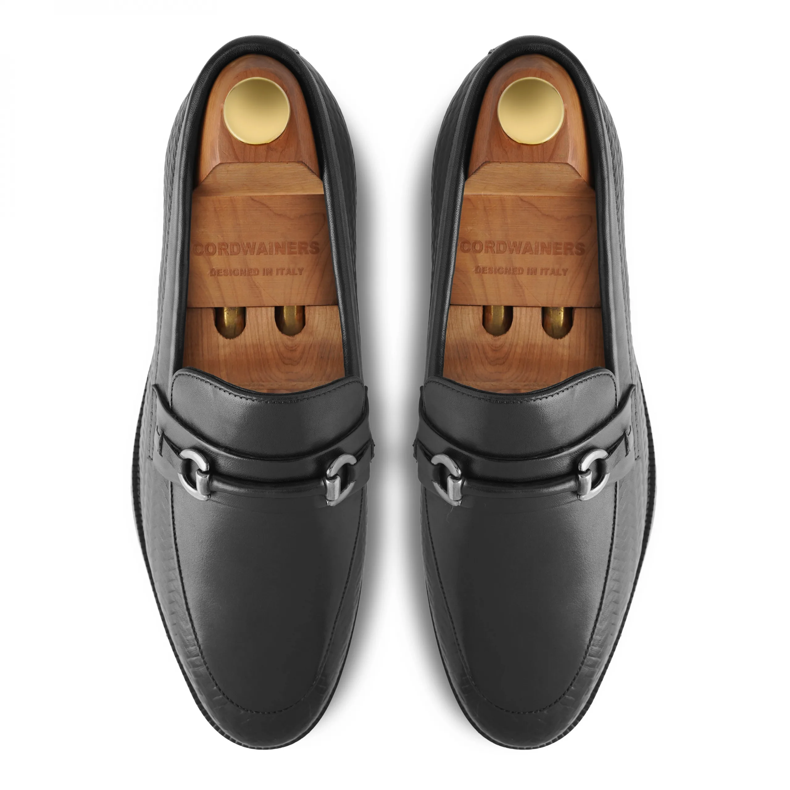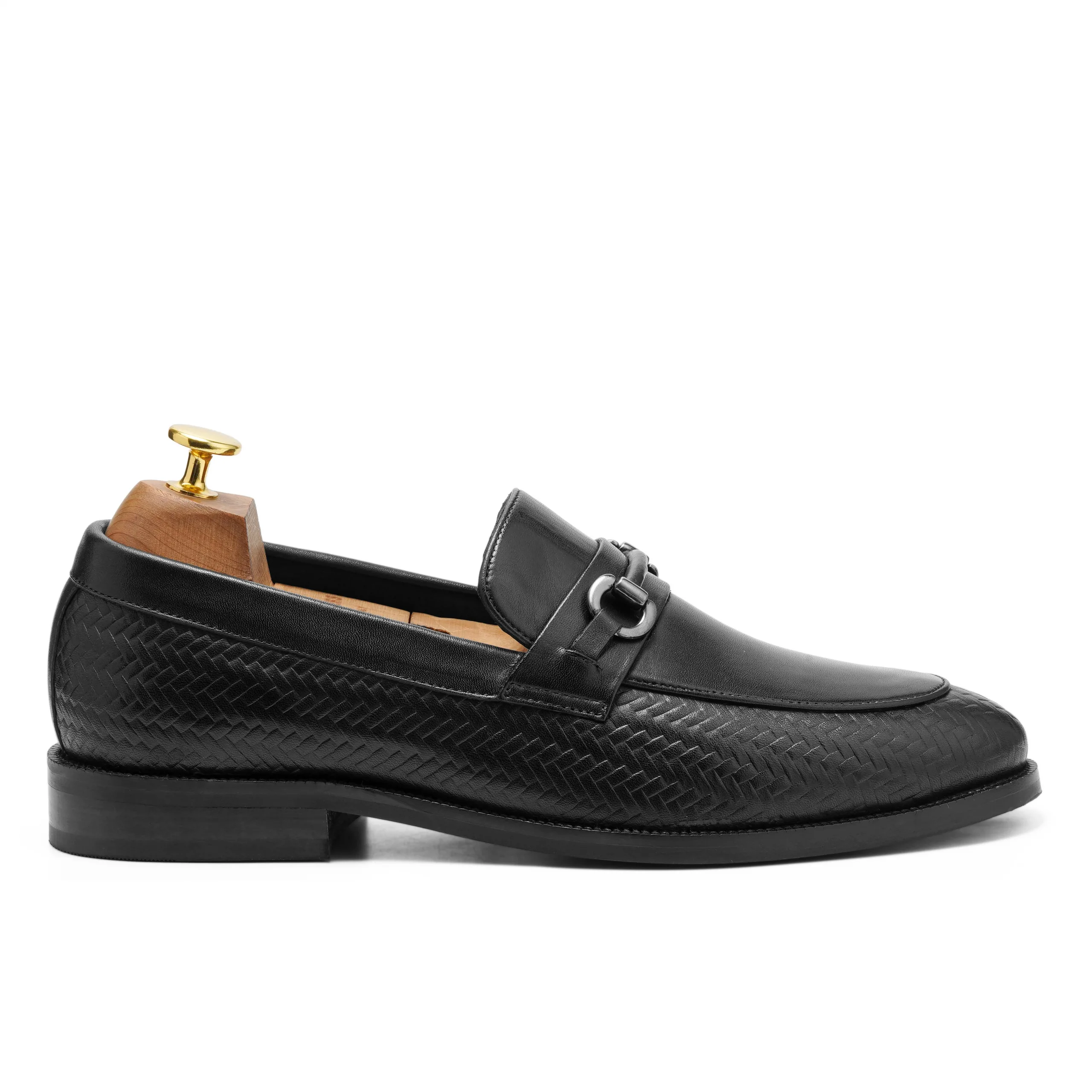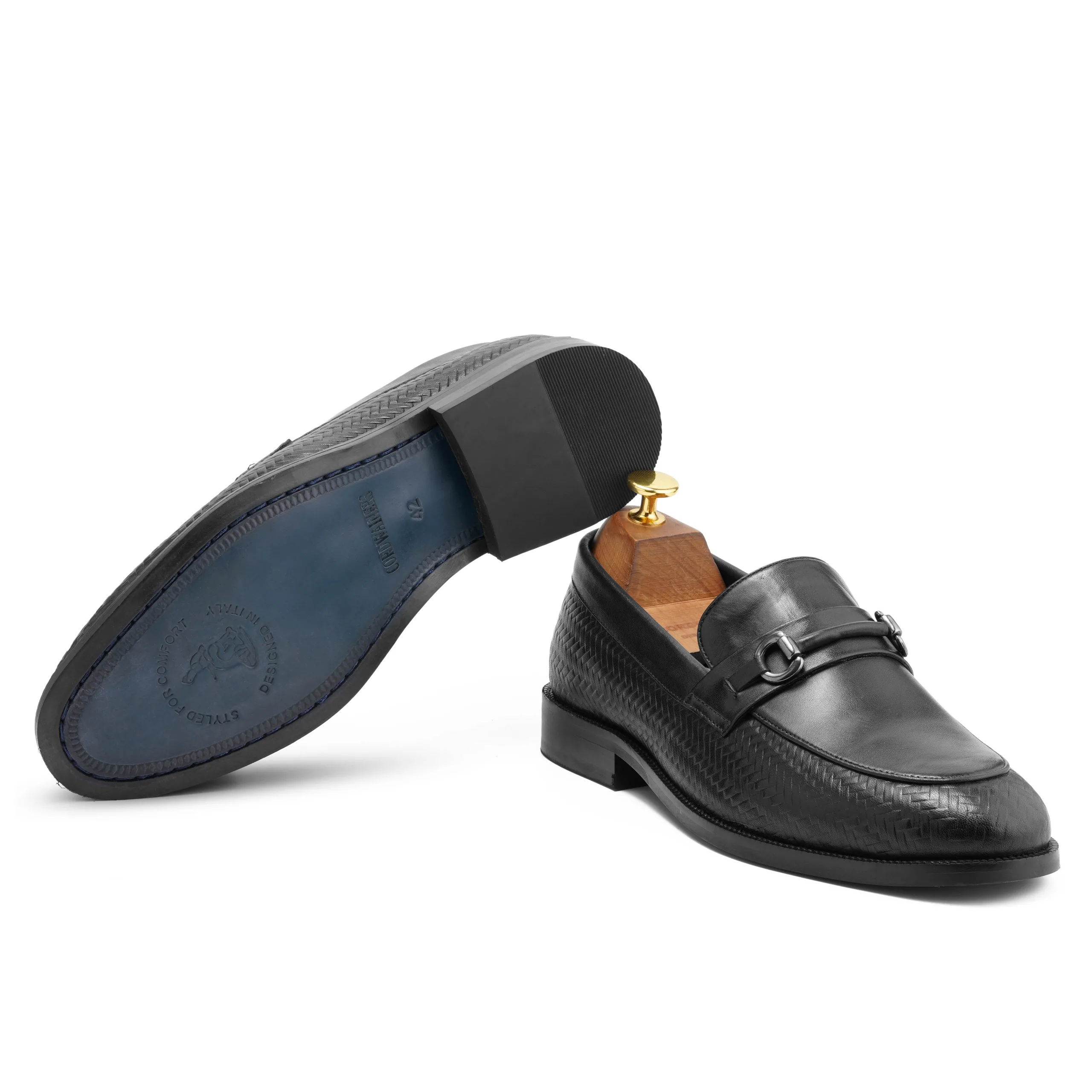 Redefine sophistication with these Black leather slip-on shoes, designed for versatility and timeless elegance. With their textured detailing, they offer a stylish edge to semi-formal dressing.