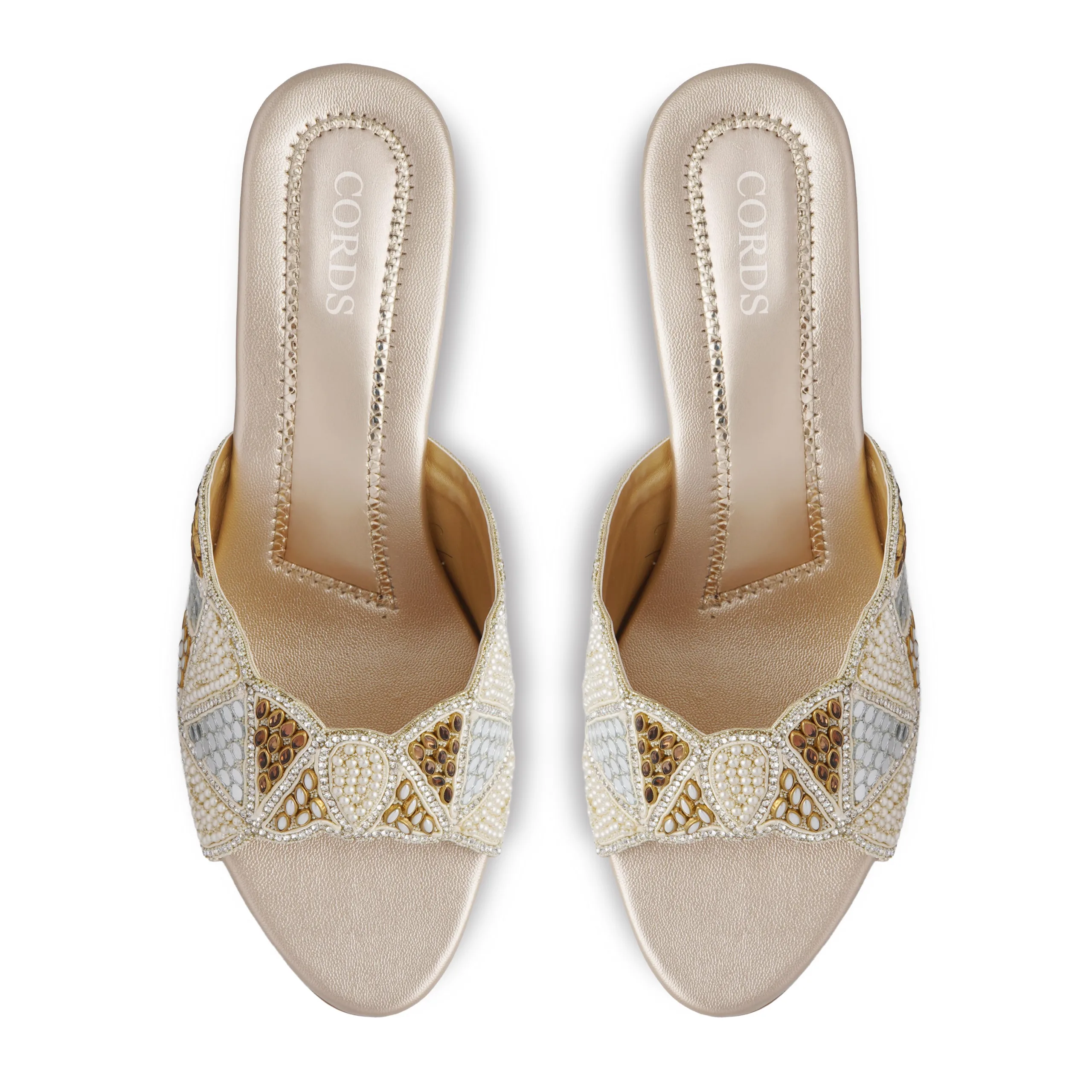 Crafted for the modern woman who values both style and comfort, these Beige block heel slippers are the perfect blend of glamour and grace. The golden heel detail adds a sophisticated touch, making them ideal for festive and evening occasions.