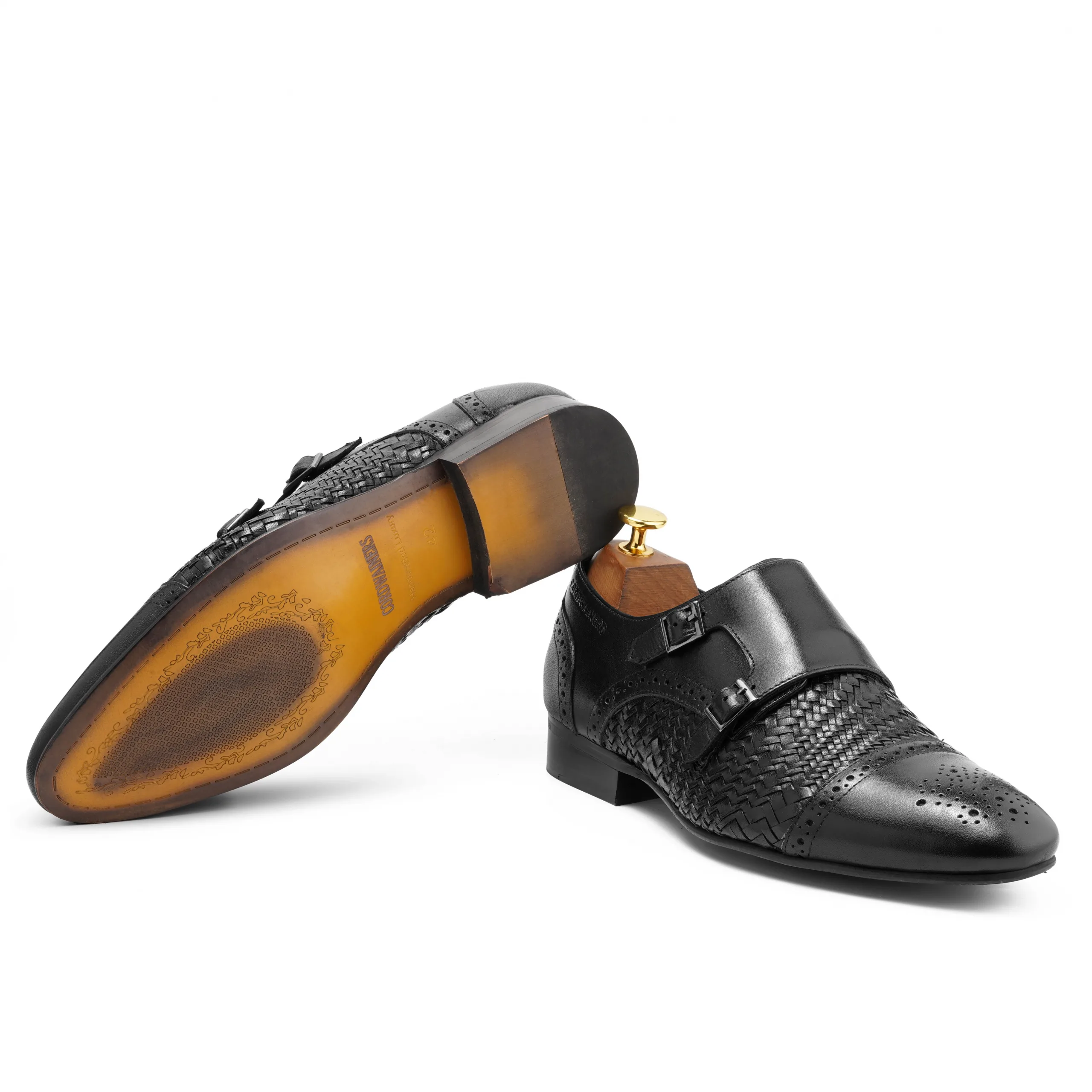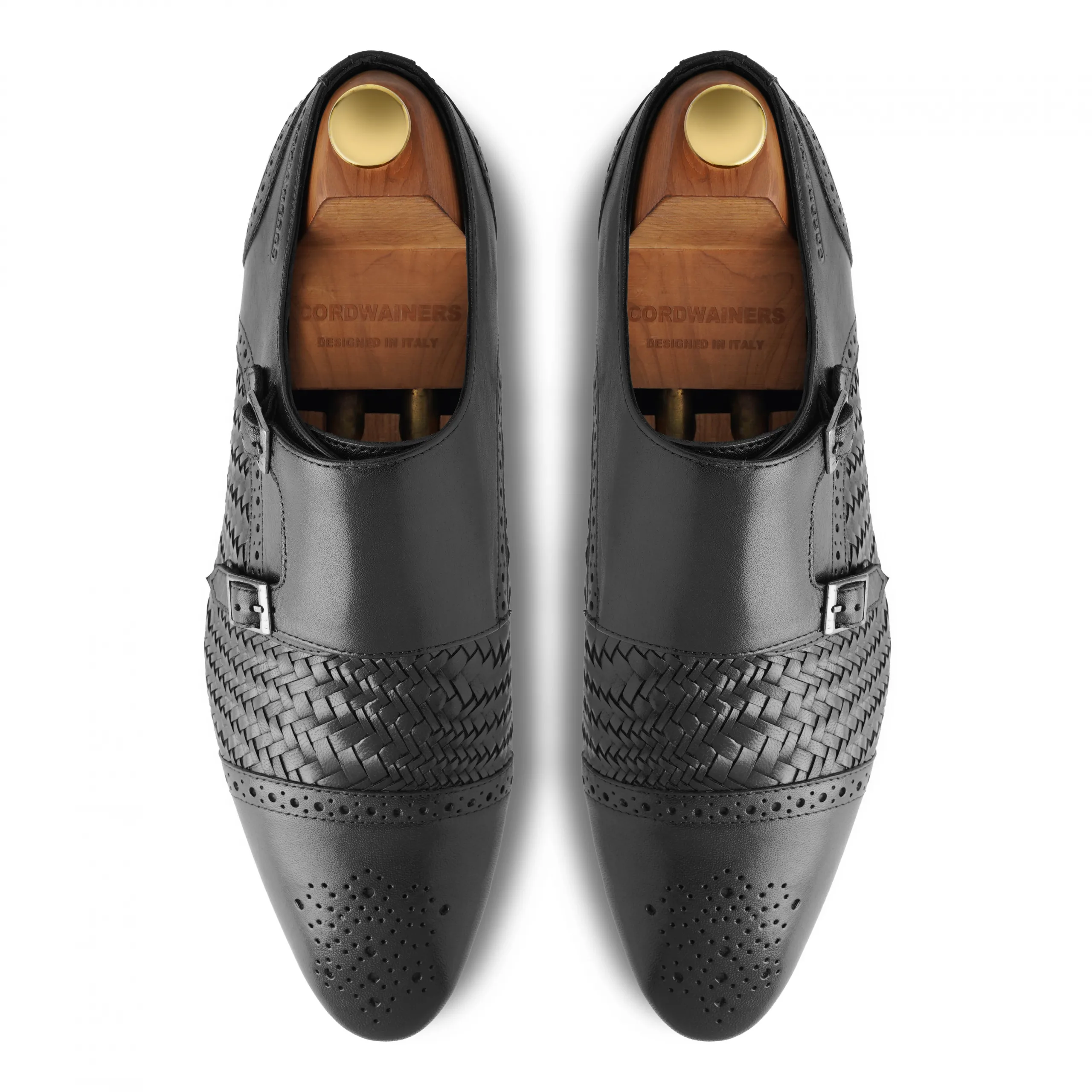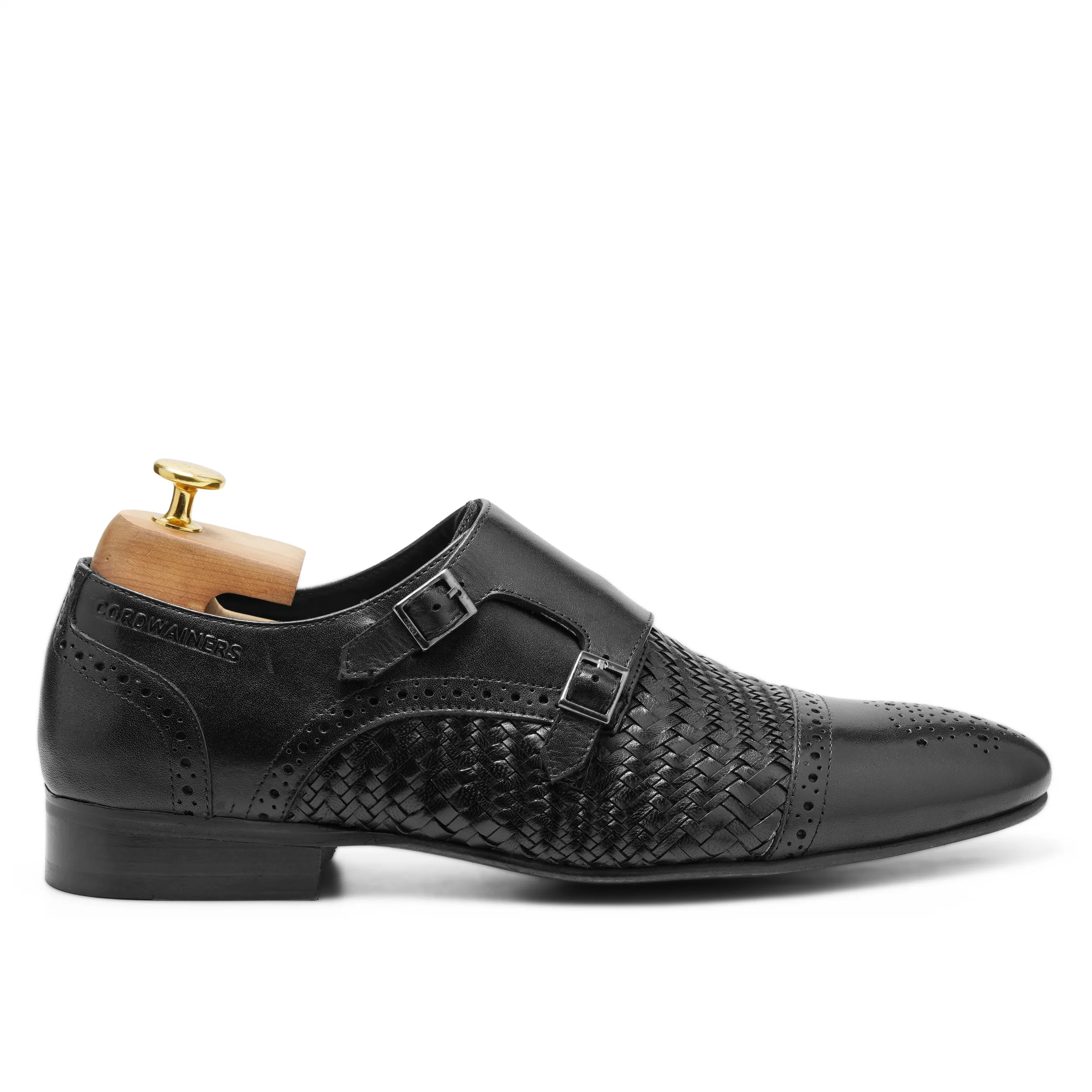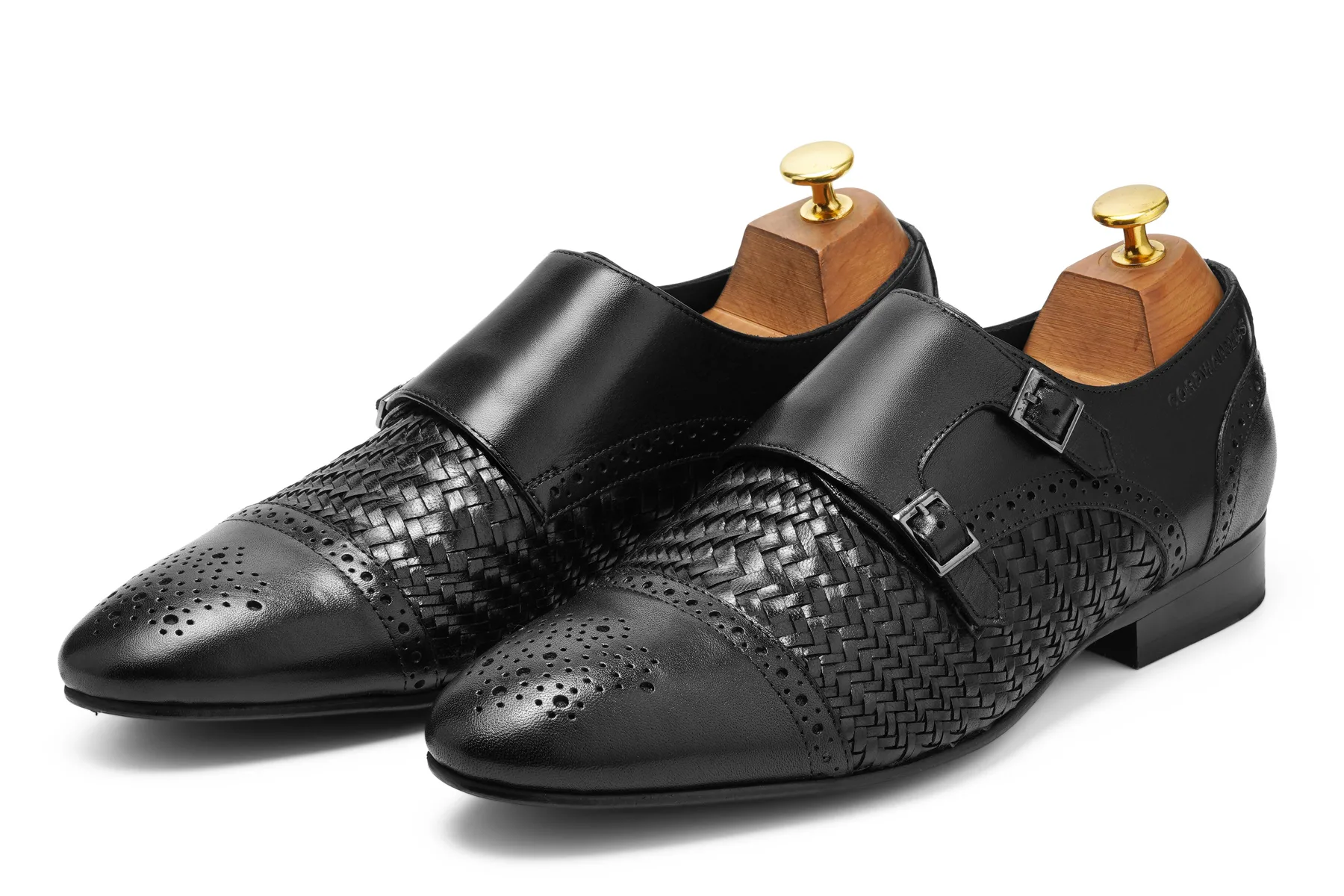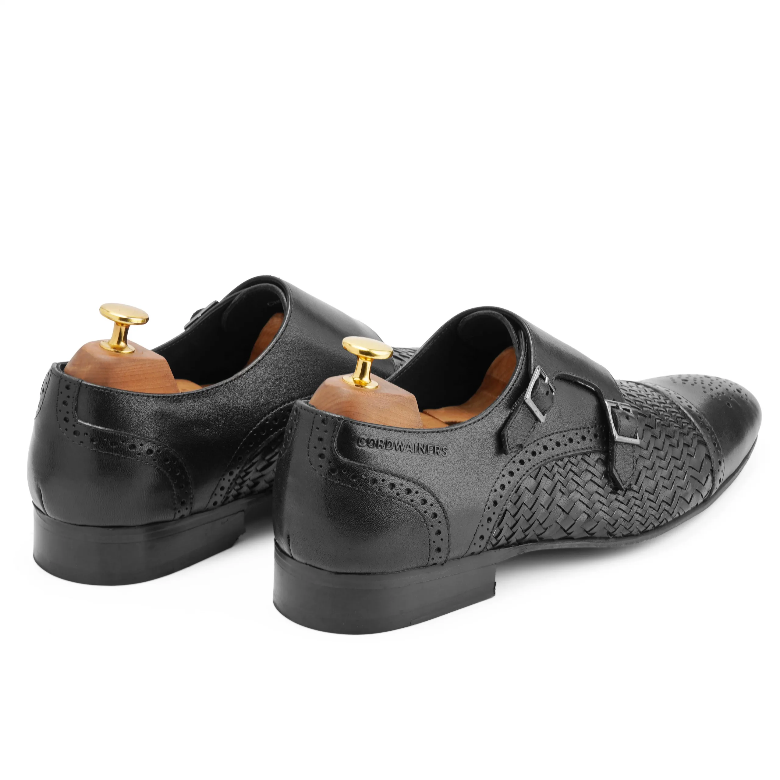 Elevate your footwear collection with these sophisticated Black leather double monk shoes, designed for both style and functionality.