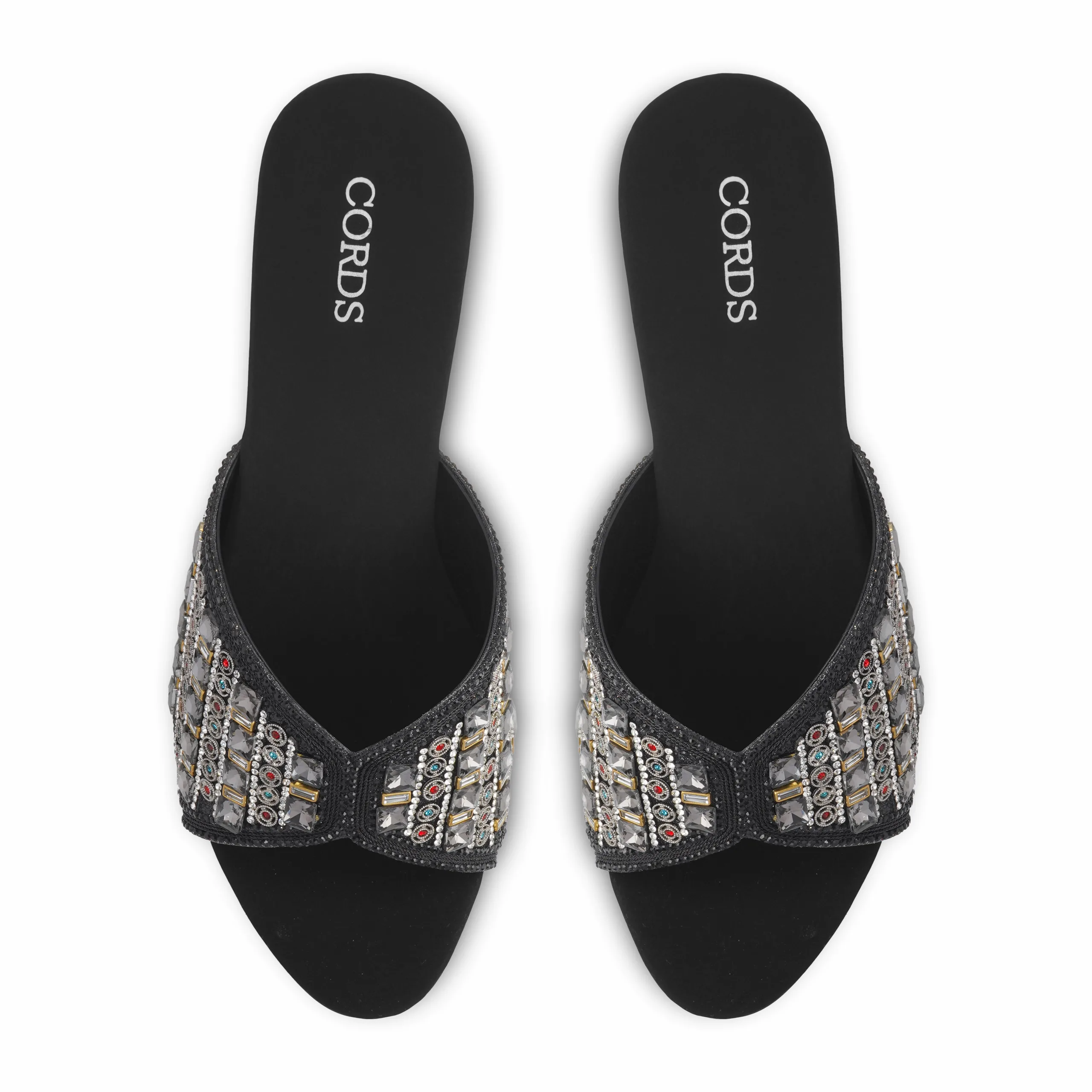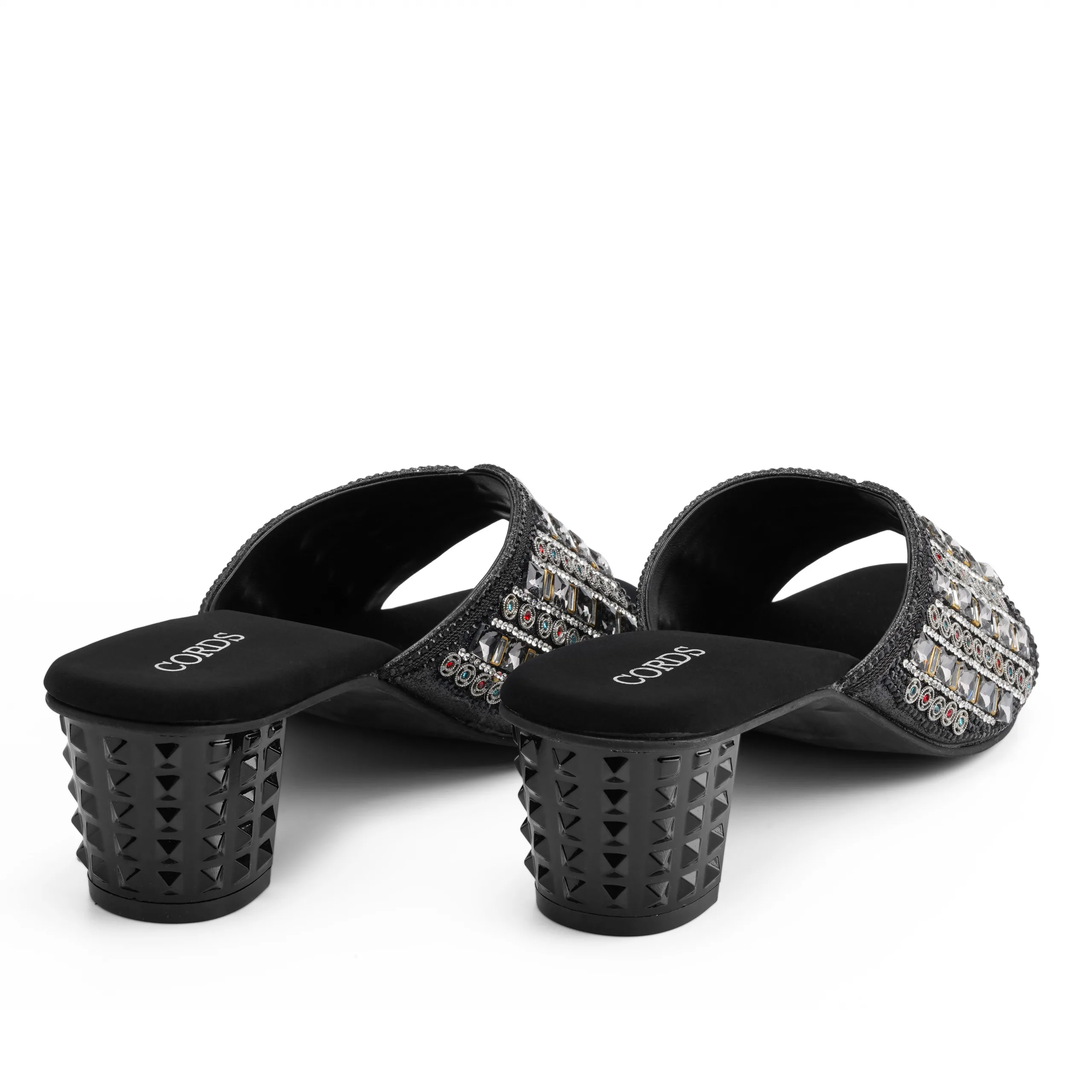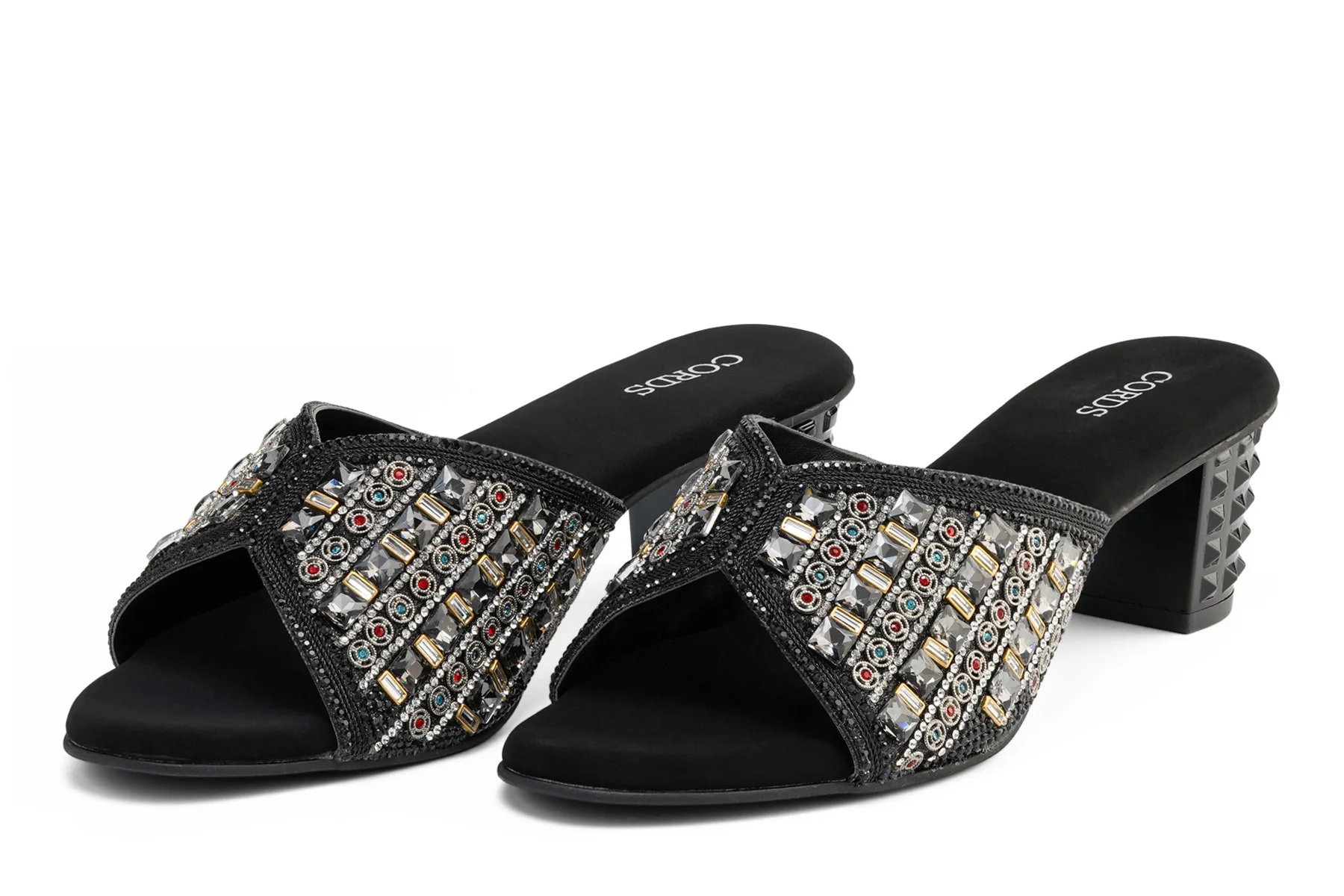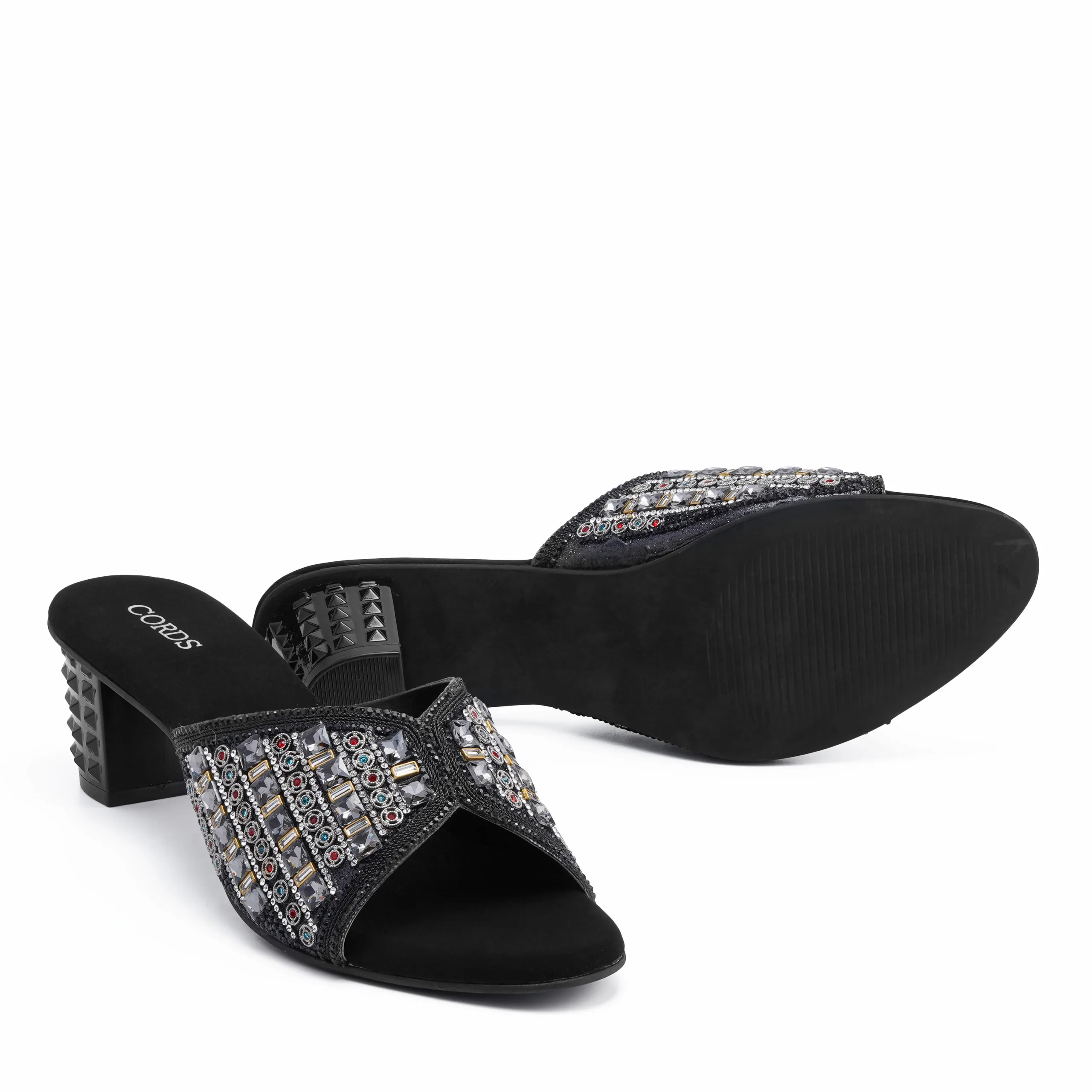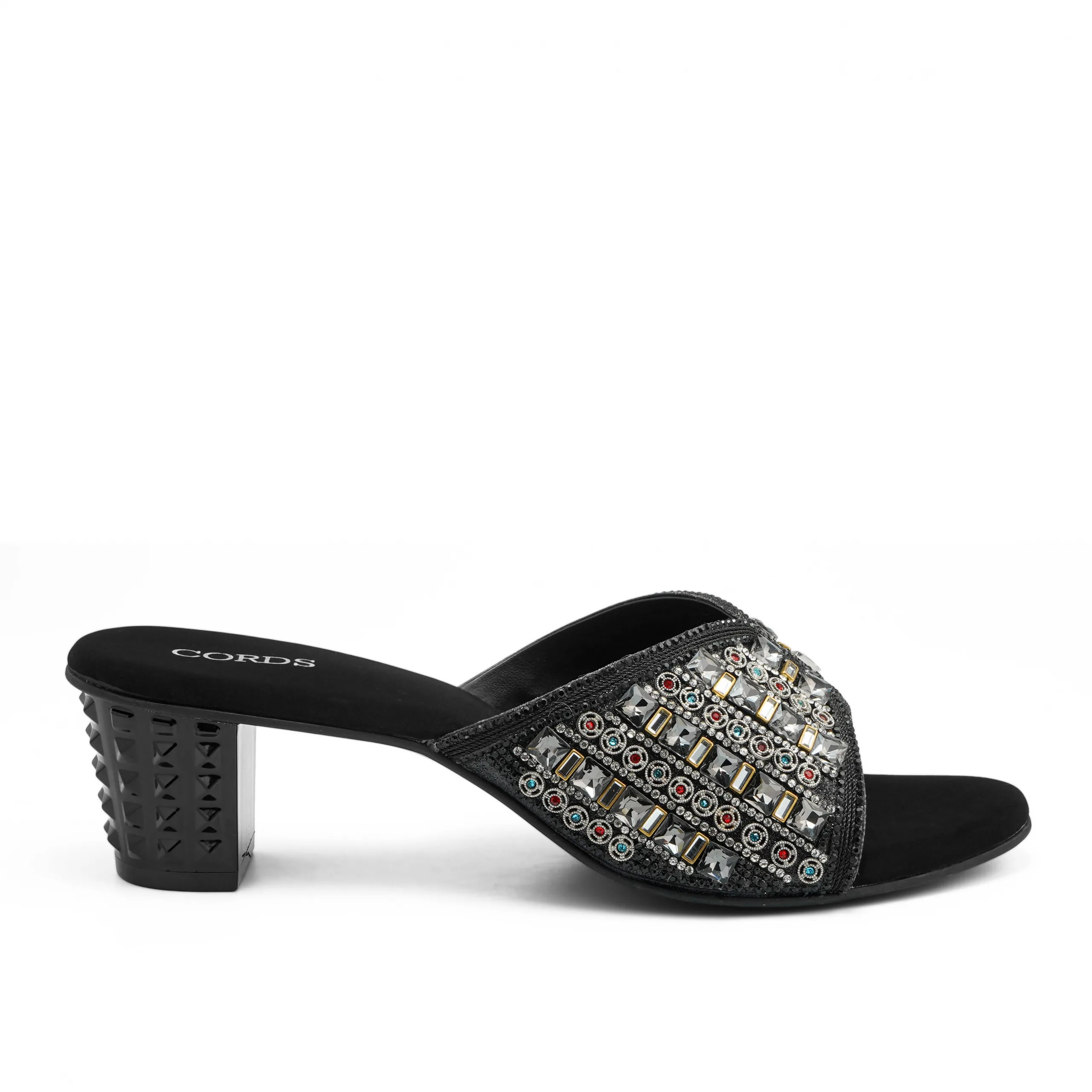 Step into effortless sophistication with these black fabric block heel slippers, designed to blend comfort and elegance. The soft fabric upper paired with a durable TPR sole ensures flexibility, balance, and long-lasting comfort — making them perfect for evening events or festive celebrations.