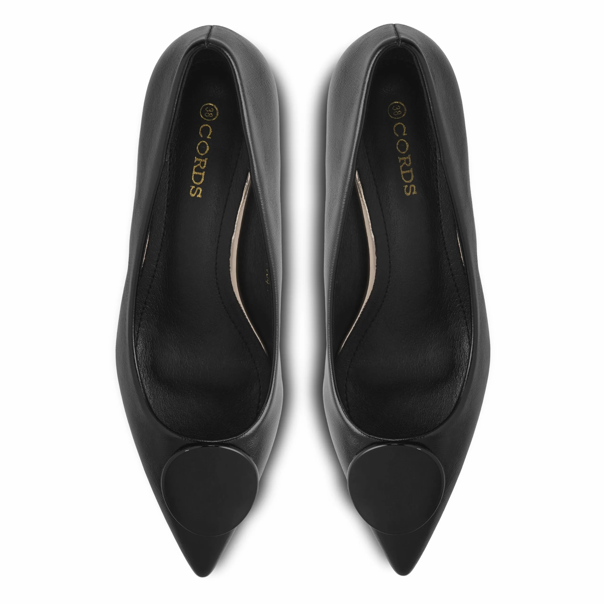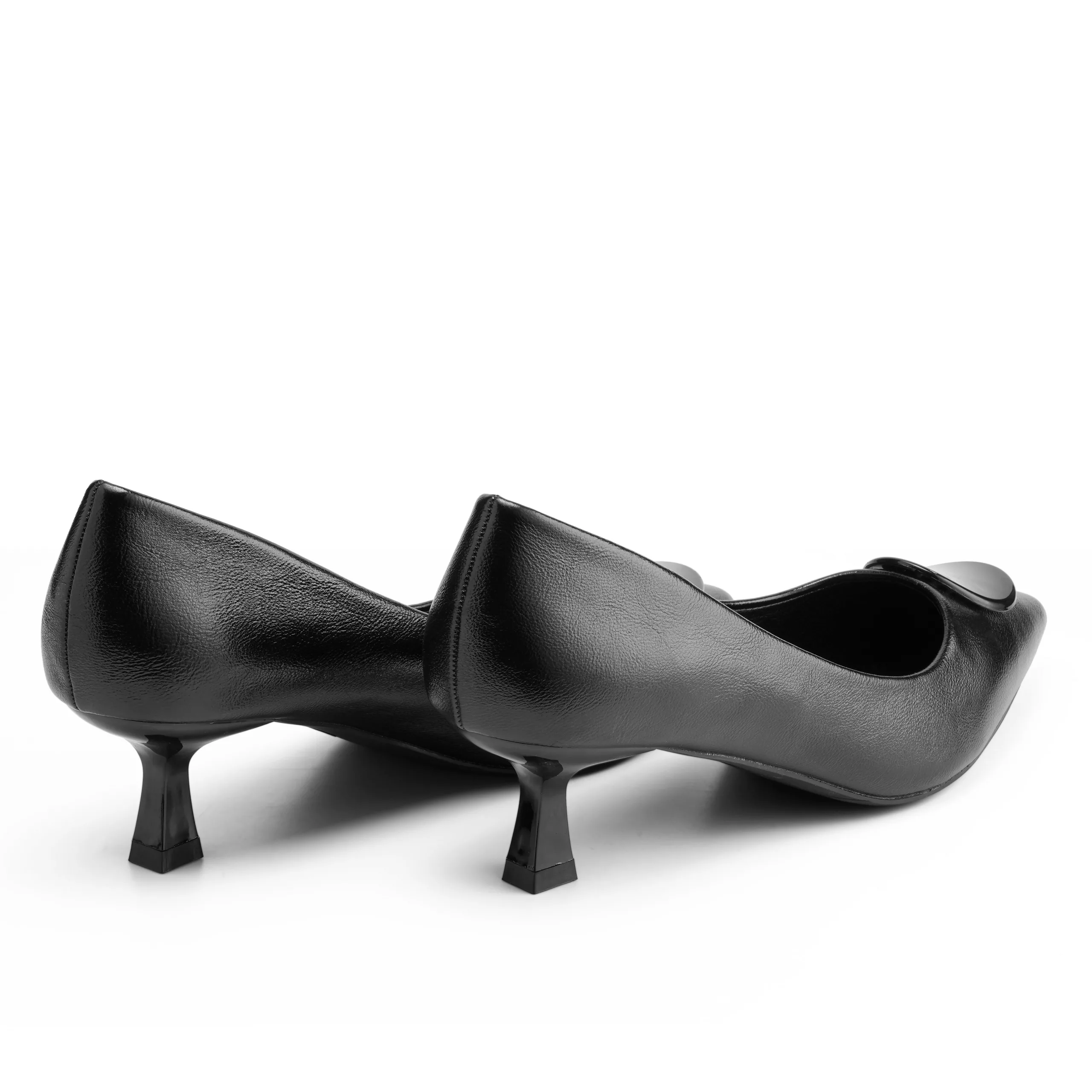 Step into timeless sophistication with this black leather pencil heel bally, crafted for women who appreciate elegant design with lasting comfort. The pointed toe silhouette adds a refined touch, while the TPR sole ensures stability, balance, and effortless movement.